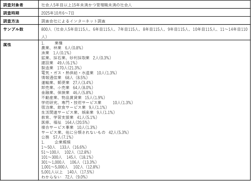 *本リリースでは、社会人5年目以上15年未満、役職に就いていない社員を「ミドルキャリア」と記載