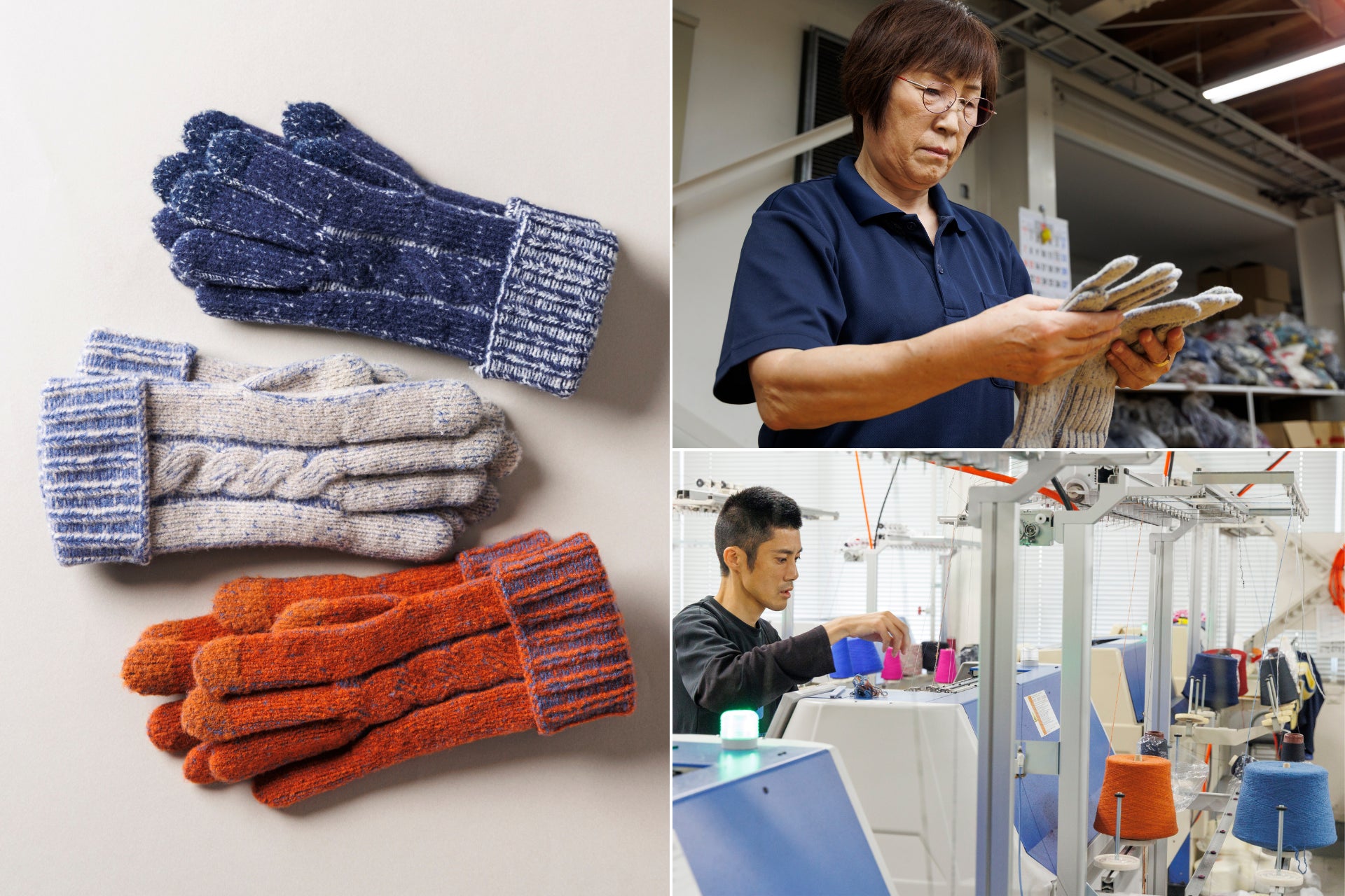 手にはめた瞬間、とろけるような感覚。職人の技で起毛させたフワフワのプレミアムシュークリーム糸が、抜群の暖かさを演出します。手袋大国・香川県東かがわ市で、最新鋭ホールガーメント機と職人技を融合させ独自の地位を築くフクシンが手掛けた一品。内側を裏起毛し、ロープ柄と絶妙な配色で仕上げた藤巻百貨店別注モデルです。