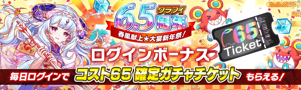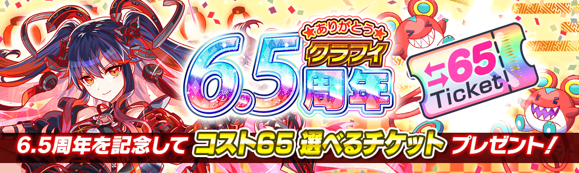 6.5周年イベント期間中にログインすると、「コスト65選べるチケット」がもらえる!