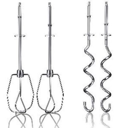 さらに、ハンドミキサーの要となるアタッチメントはビーター(混ぜる)に加え、ニーダー(こねる)が付属。ビーターは生クリームや卵白、ニーダーはパンやパスタなど、お菓子だけでなくお料理にも幅広くお使いいただけます。また、人間工学に基づいて設計された握りやすいハンドルを採用し、パワフルでありながら軽量かつコンパクトなサイズで幅広い方々にお使いいただけます。