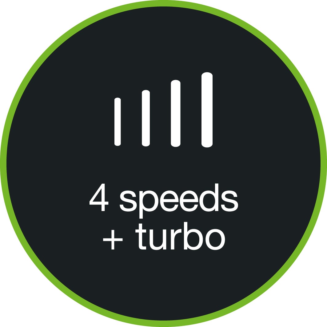 ハンドルを握ったまま4段階のスピード切り替えが可能。仕上がり具合を見ながら撹拌(かくはん)スピードを簡単に調整できます。一気にスピードアップできるターボ機能も搭載。