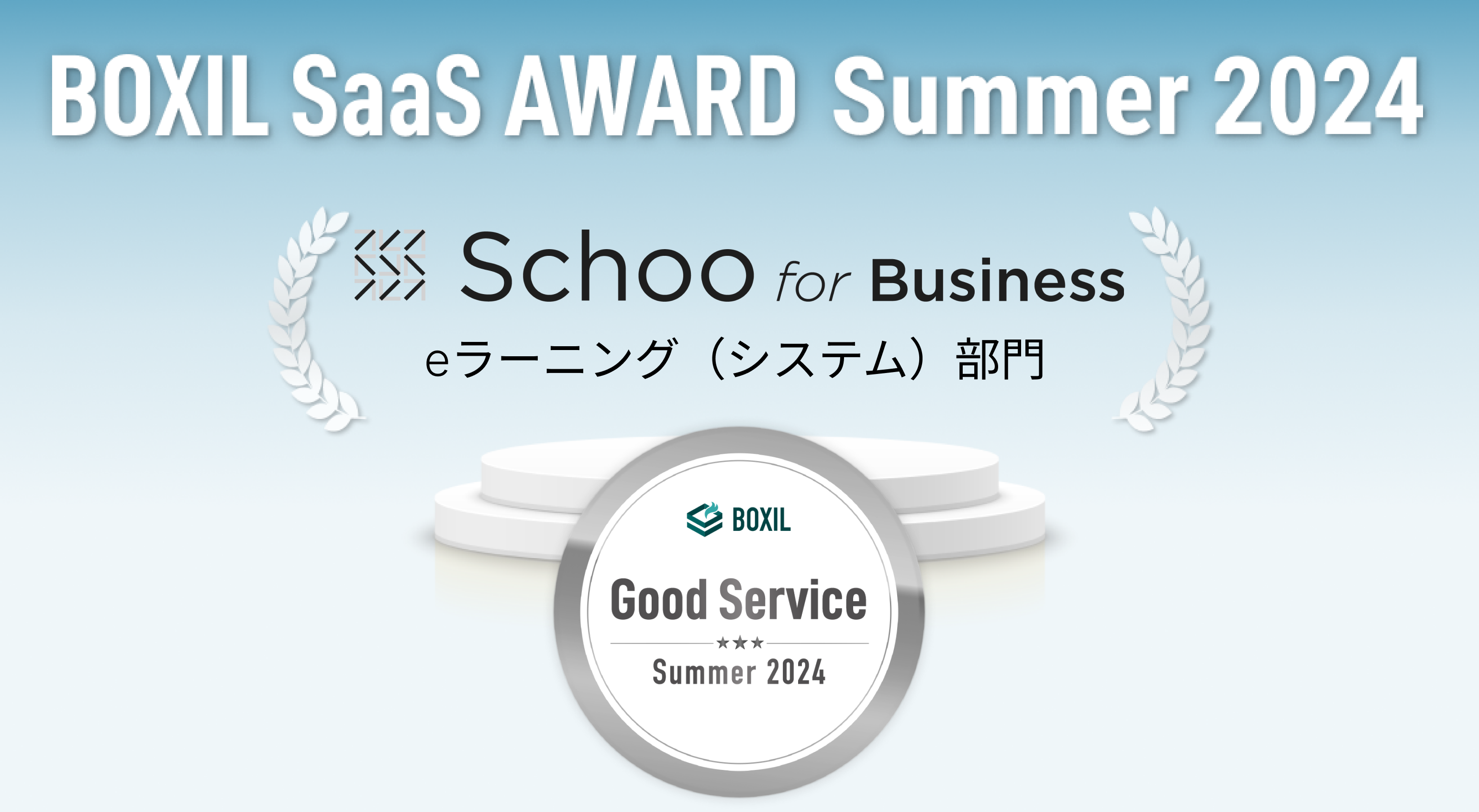 法人向けオンライン研修サービス「Schoo for Business」が、「BOXIL SaaS AWARD Summer 2024」e ラーニング(システム)部門で「Good Service」に選出