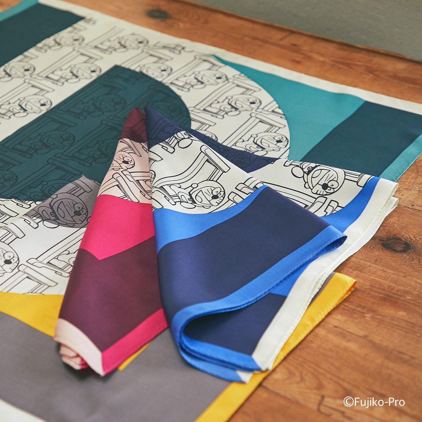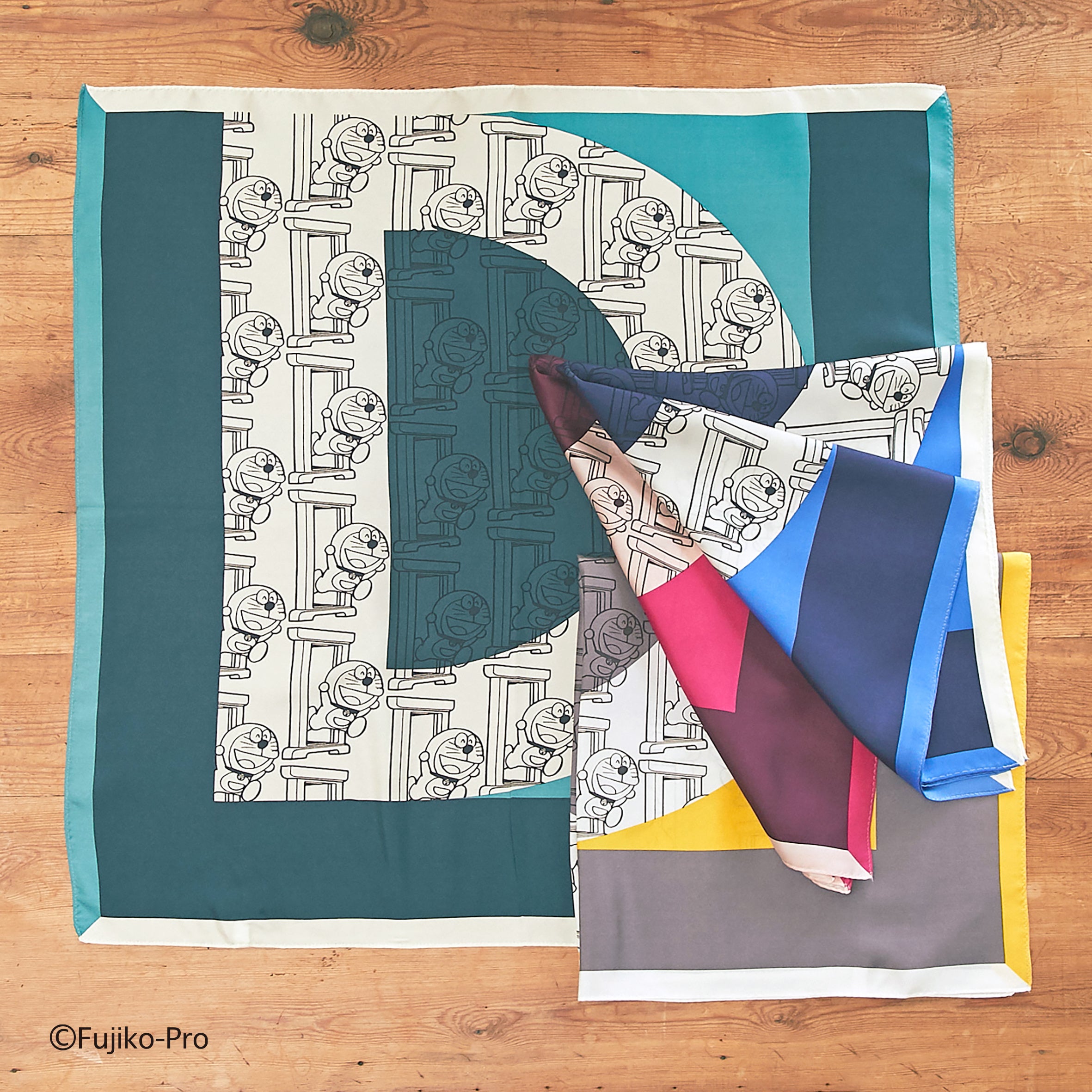 服飾雑貨メーカー川辺株式会社 ドラえもんとクラシカルなジオメトリックパターンの洒落感たっぷりスカーフが登場!