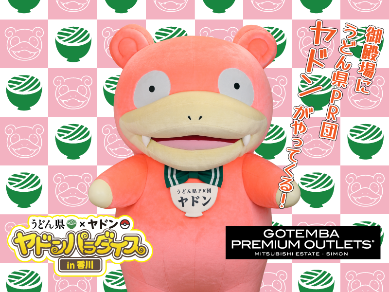 9月24日(土)・25日(日)には、ポケモンローカルActsの活動とも連携し、香川県の推しポケモンである「ヤドン」が、香川県の魅力を発信するため、様々な地域から来場が多く、ヤングファミリーはもちろんシニアの来場も多い施設、御殿場プレミアム・アウトレット(静岡県)に登場します!