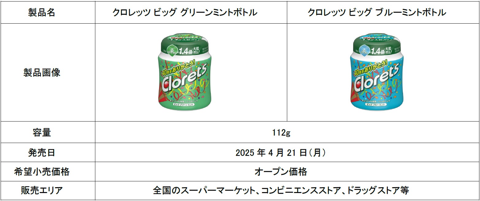 おかげさまで40周年!通常品の1.4倍サイズの大粒ガムが登場!「クロレッツ ビッグ」 4月21日(月)より2つのフレーバーで新発売