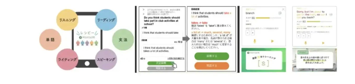 ・6技能全てを網羅した英語学習アプリ「レシピー」を利用した総合的な英語力の向上・AIにより、学習履歴や他学習者の成果の出た学習プロセスを分析し、一人一人に合わた日々の学習カリキュラムを生成