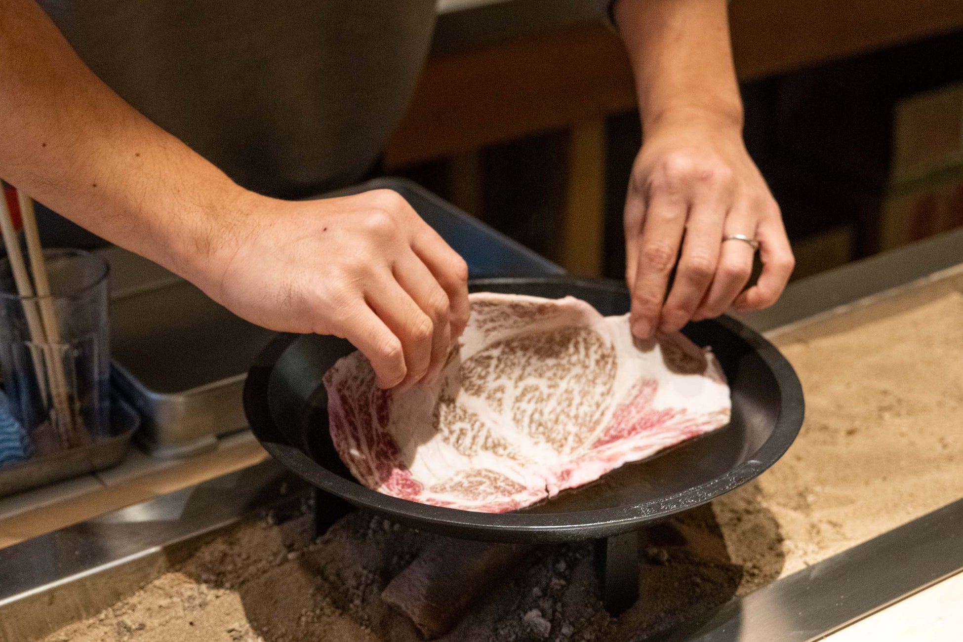 東京食肉市場で旬のお肉を買い付けており、その時期に一番の和牛銘柄をご用意しております。