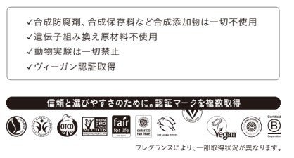 天然由来成分100%にこだわり、石油系界面活性剤、合成保存料、合成着色料、合成香料など合成添加物は一切使用していません。