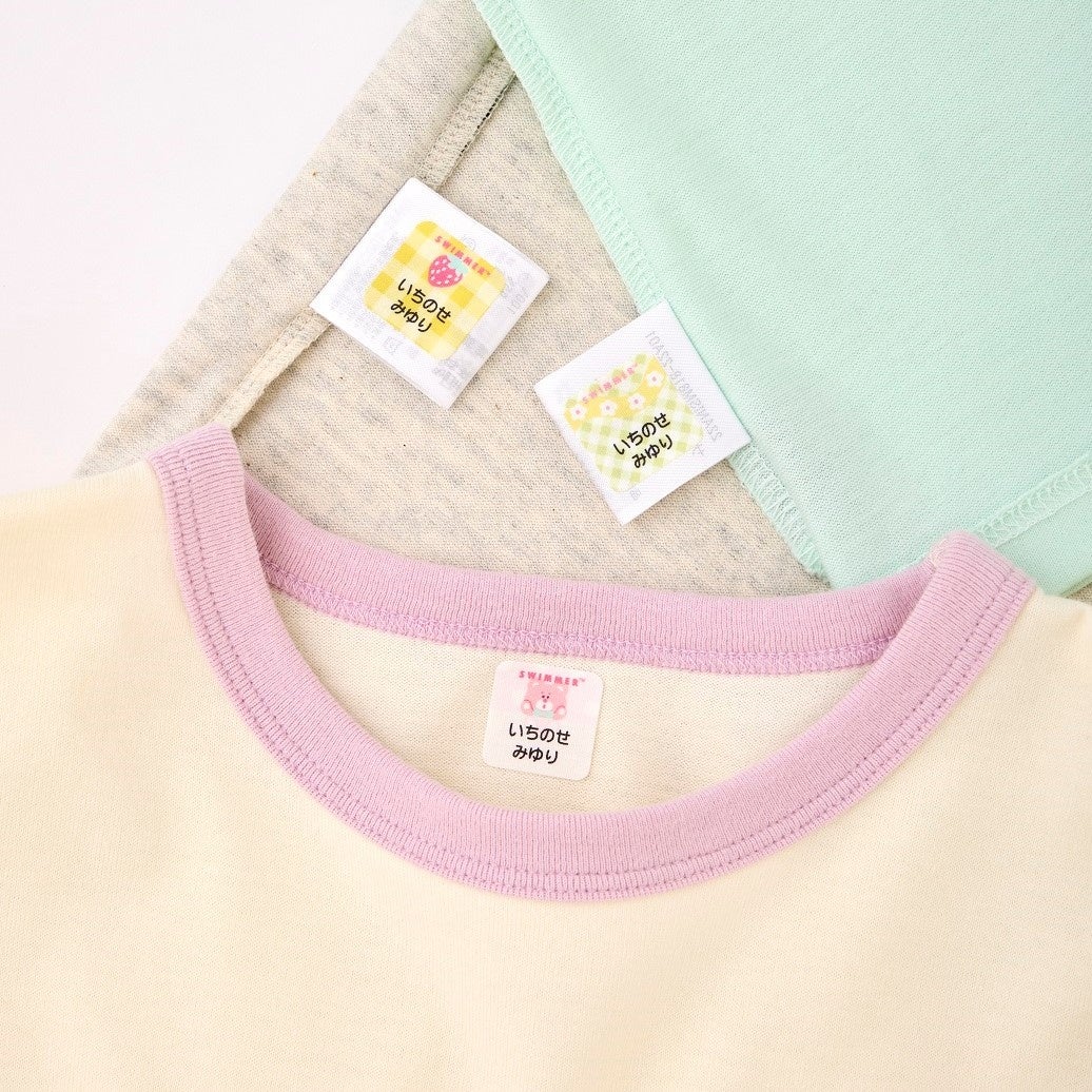 「洋服タグ用」はアイロン不要で、園や小学校用の洋服タグに手軽にシールを貼り付けられる仕様です。「シーツ・布団用」は大判・中サイズのラベルシールで、アイロンでしっかりと接着させることで、シールが剥がれにくくなっています。また、本商品は注文時に印刷したい名前を指定して受注生産で製作するため、商品が届いた後は「貼るだけ」「アイロンをかけるだけ」で手軽に使用でき、下着や上下の衣服、タオル、布団など多岐にわたる子どもの持ちものへの記名がストレスなく行えます。また、スイマーのカラフルでかわいらしいデザインが気持ちを明るくしてくれます。