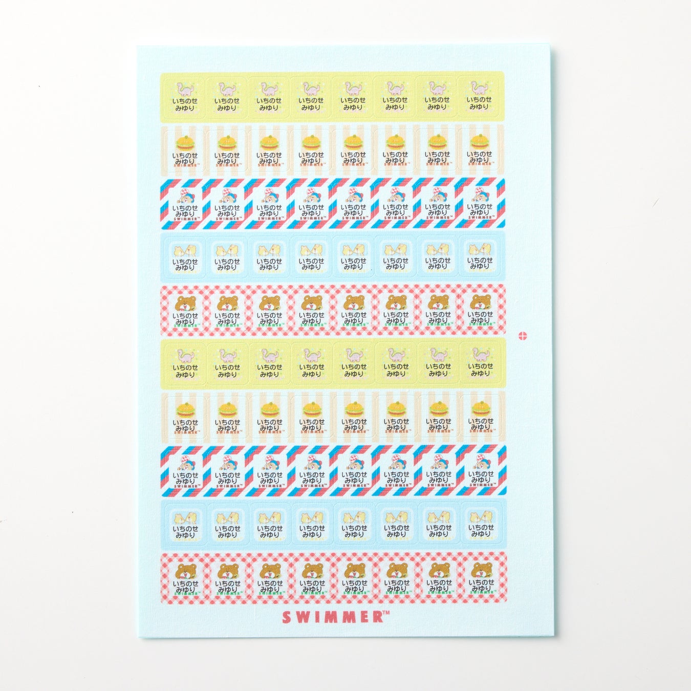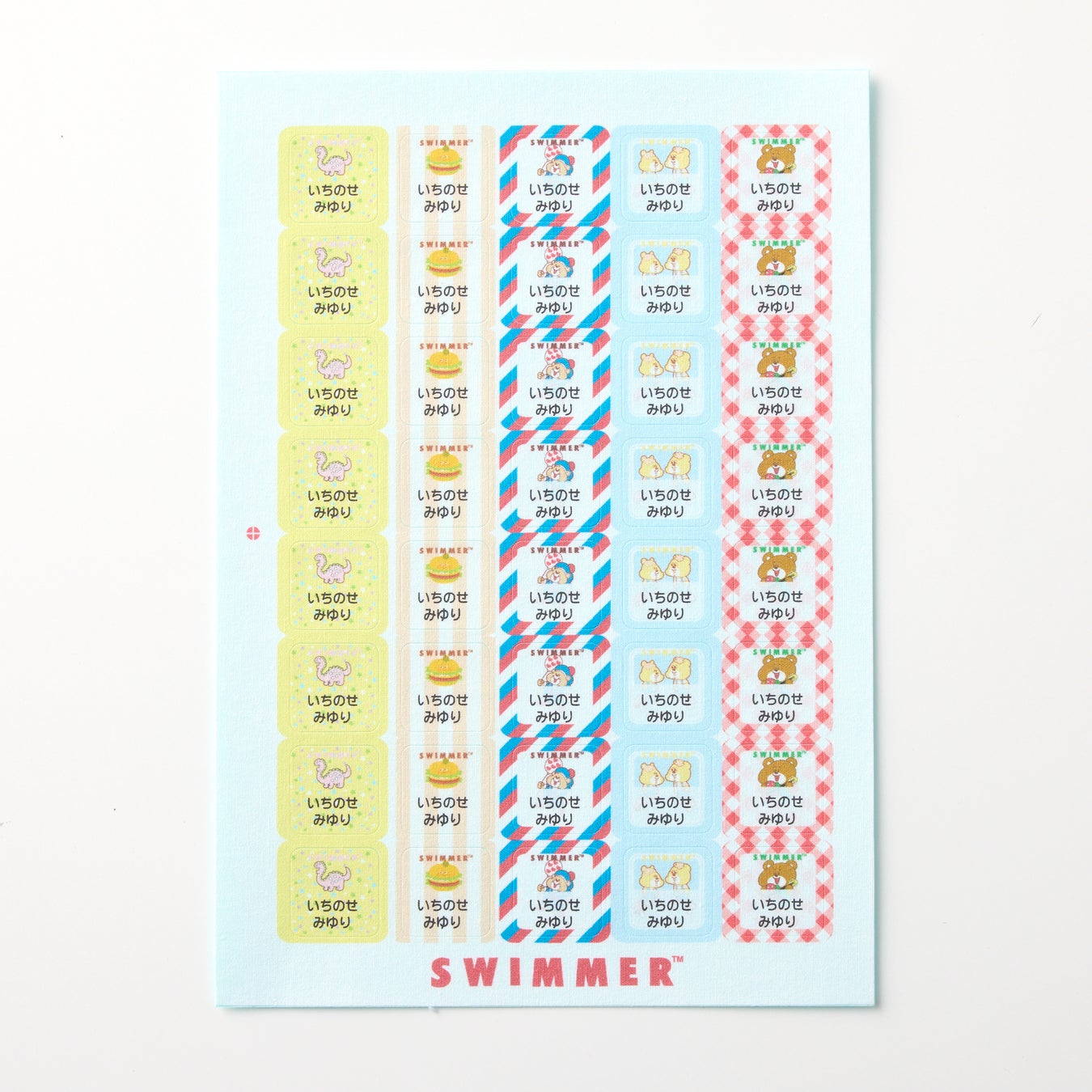 子どもの持ち物に手軽に貼れるラベルシールにスイマーデザインが初登場
