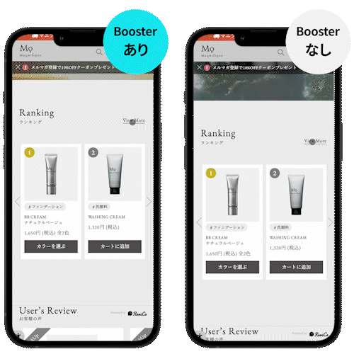 また、新規ユーザーを対象としたA/Bテストでは、Repro Boosterを適用したページの方がコンバージョン率で優位性を示し、売上への貢献も明確に確認されています。