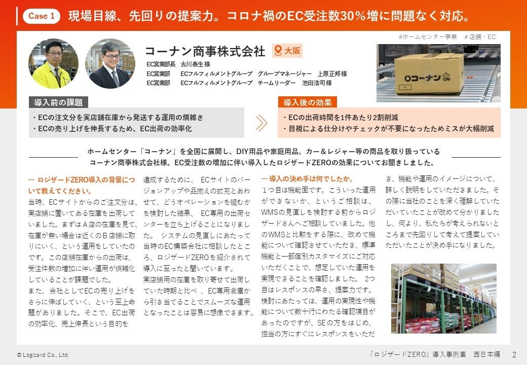 本資料では、クラウドWMS「ロジザードZERO」を導入する前の課題や導入後の効果について、西日本のユーザー様にお話を伺った内容をご紹介しています。