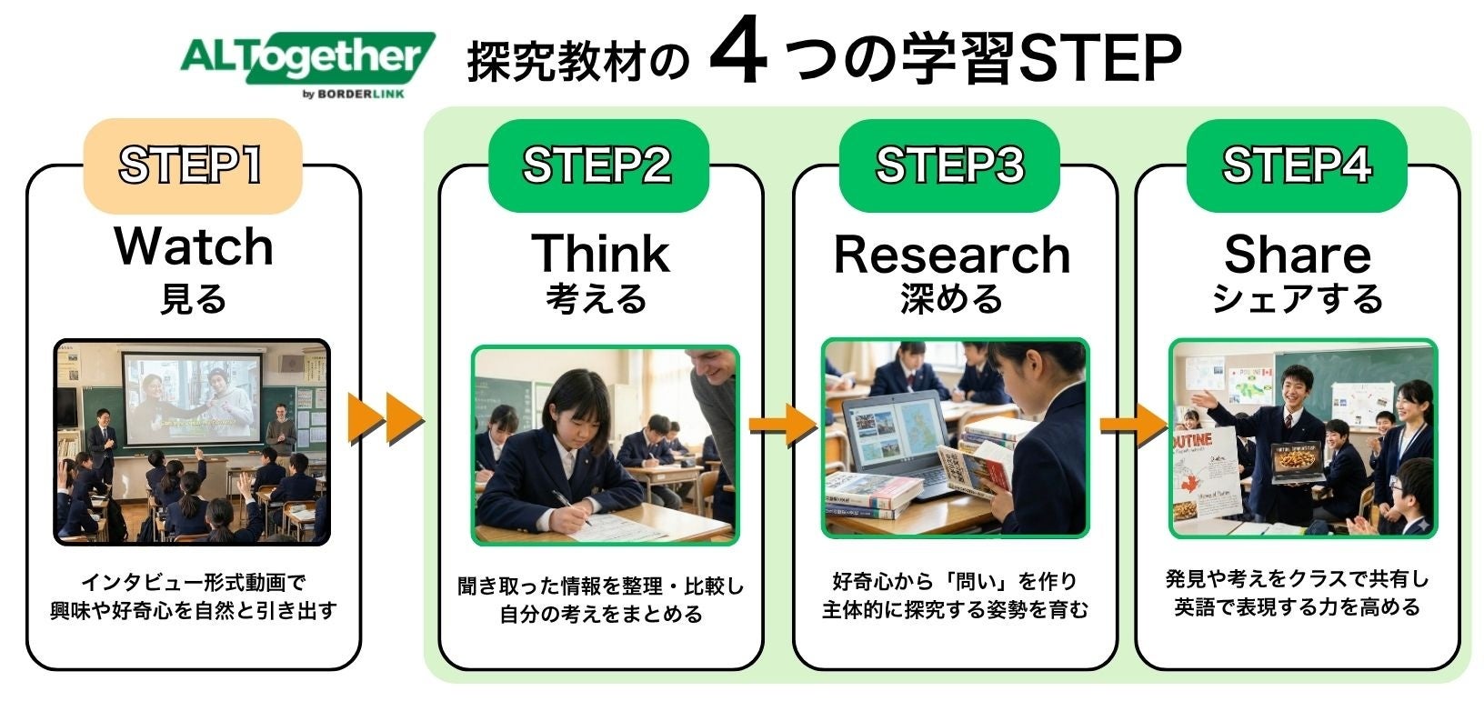 EdTechカンパニーの株式会社レアジョブ(以下、レアジョブ)の外国語教育支援事業を展開する子会社の株式会社ボーダーリンク(以下、ボーダーリンク)は、英語学習サイト「ALTogether(オルトゥゲザー)」にて、新たにインタビュー形式の「動画コンテンツ」と、探究学習を支援する「専用ワークシート」の提供を開始することをお知らせいたします。今回の新機能リリースに伴い、実際の学校の授業でご利用いただく無償トライアル校を募集いたします。