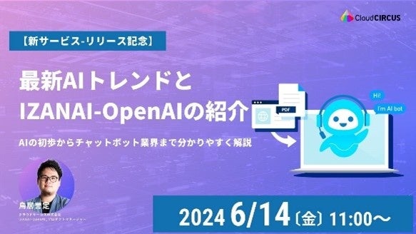 クラウドサーカスは、2021年6月にはシナリオ型のチャットボット『IZANAI(イザナイ)』を提供しており、『IZANAI』はこれまで2,400件以上の中堅・中小企業へ導入いただいています(2024年3月末現在)。今回、新たにAI型『IZANAI-OpenAI』が加わることで、より手軽にDXや生成AI活用への第一歩を踏み出していただき、中小企業の生産性の向上と業務効率化を実現して参ります。