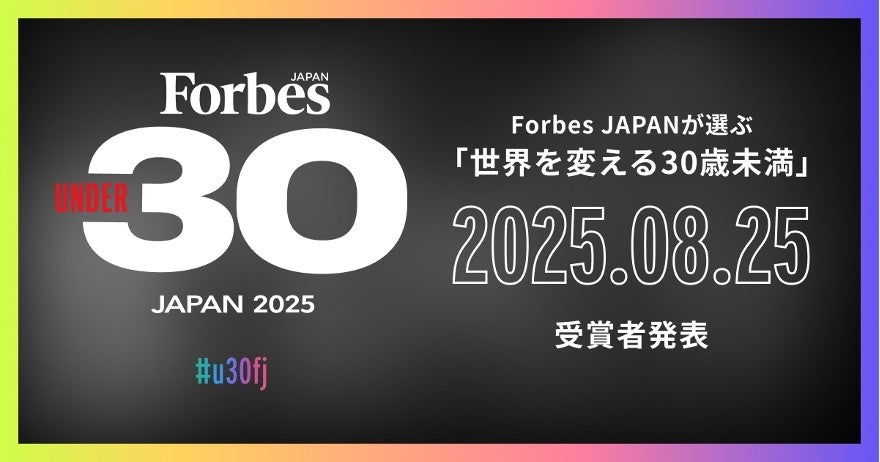 グローバルビジネス誌Forbes JAPAN(発行元:リンクタイズ株式会社、代表取締役社長:角田 勇太郎)は、今年も8月25日に、「世界を変える30歳未満」を選出する「Forbes JAPAN 30 UNDER 30 2025」を発表します。
