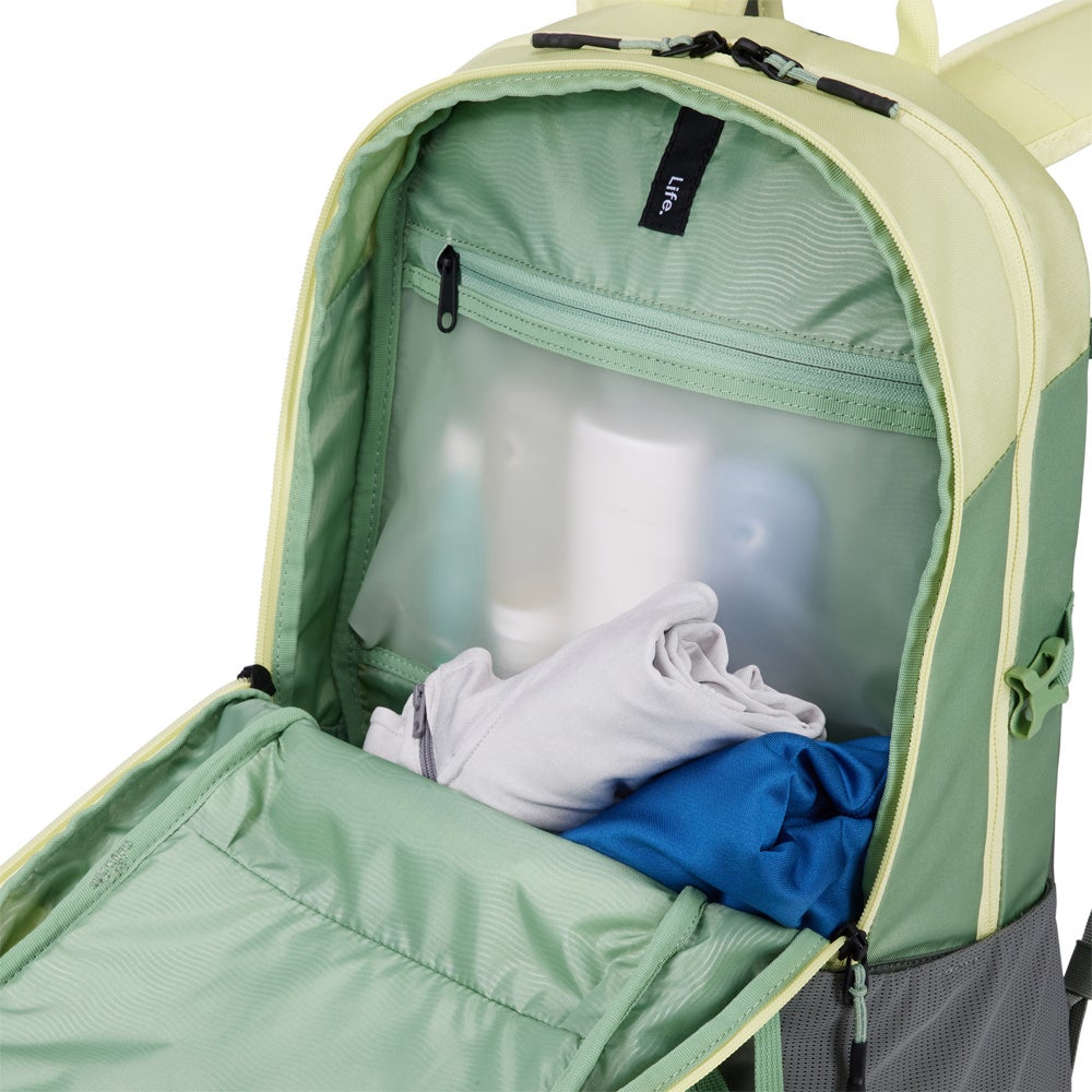 フロントの伸縮ポケットとたっぷり1日分が⼊る容量で、気軽なデイハイクや週末アクティビティにも最適な26Lモデル。