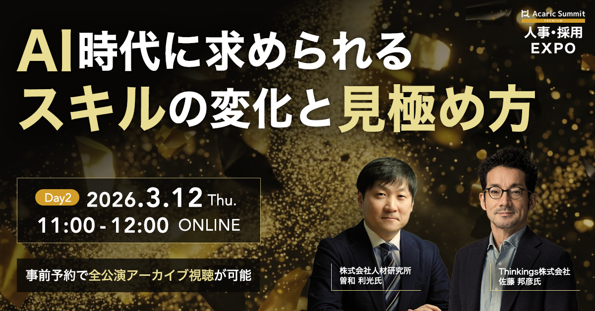 博士人材をはじめとする大学院生・研究者のキャリア支援を行う株式会社アカリク(本社:東京都渋谷区、代表取締役:山田 諒、以下 アカリク)は、国内最大級のHRオンラインイベント「Acaric Summit Premium 人事・採用EXPO -2026 -Spring」を2026年3月11日(水)・3月12日(木)・3月13日(金)に開催いたしました。