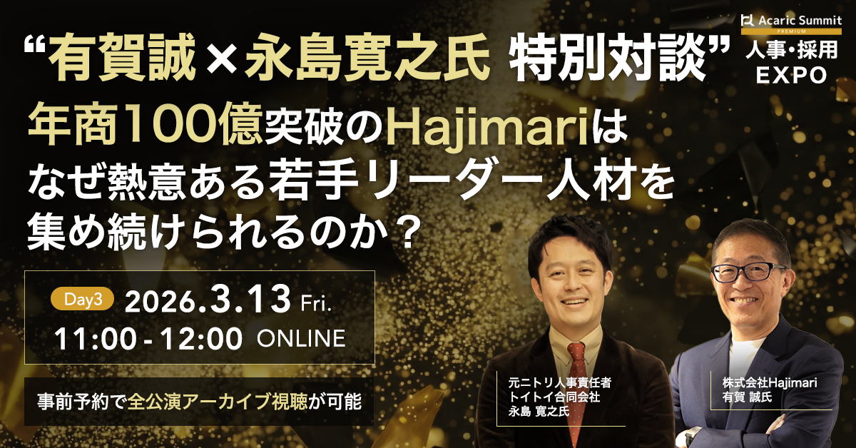 【累計1万7千名以上の人事が申込・参加】日本を代表するHR企業・オピニオンリーダーが集結!「Acaric Summit Premium 人事・採用カンファレンス -2026 Spring-」