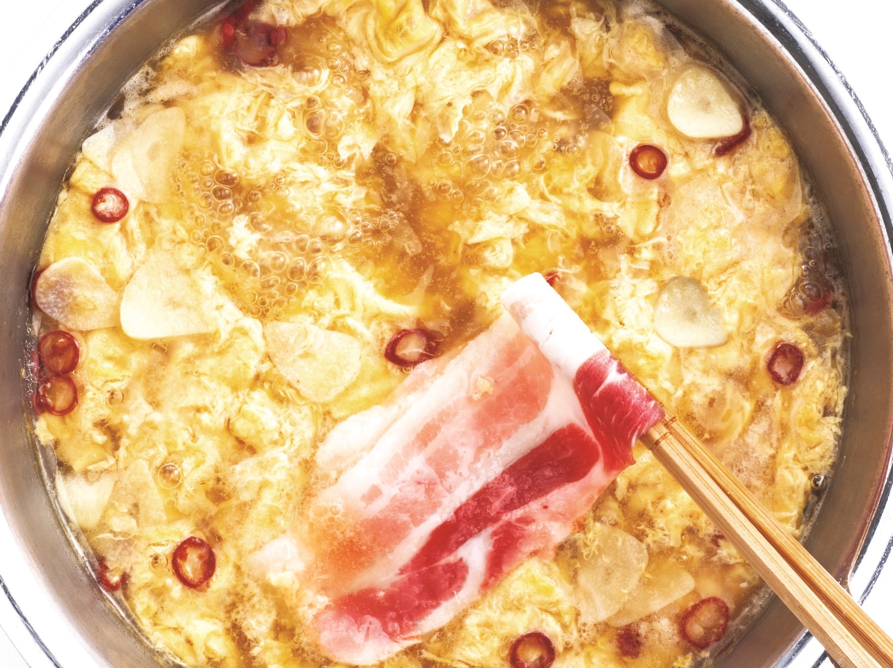 温野菜のメニュー開発者がスペインの伝統料理「ソパ・デ・アホ」(にんにくスープ)に出会ったところから始まりました。海外で初めて食べた時の名前の衝撃と、それを上回る味のインパクトに感動し、しゃぶしゃぶにアレンジしたらより美味しくなるのでは?という想いから試行錯誤を重ね、開発者の熱意でメニュー化に至った情熱の鍋メニューです。