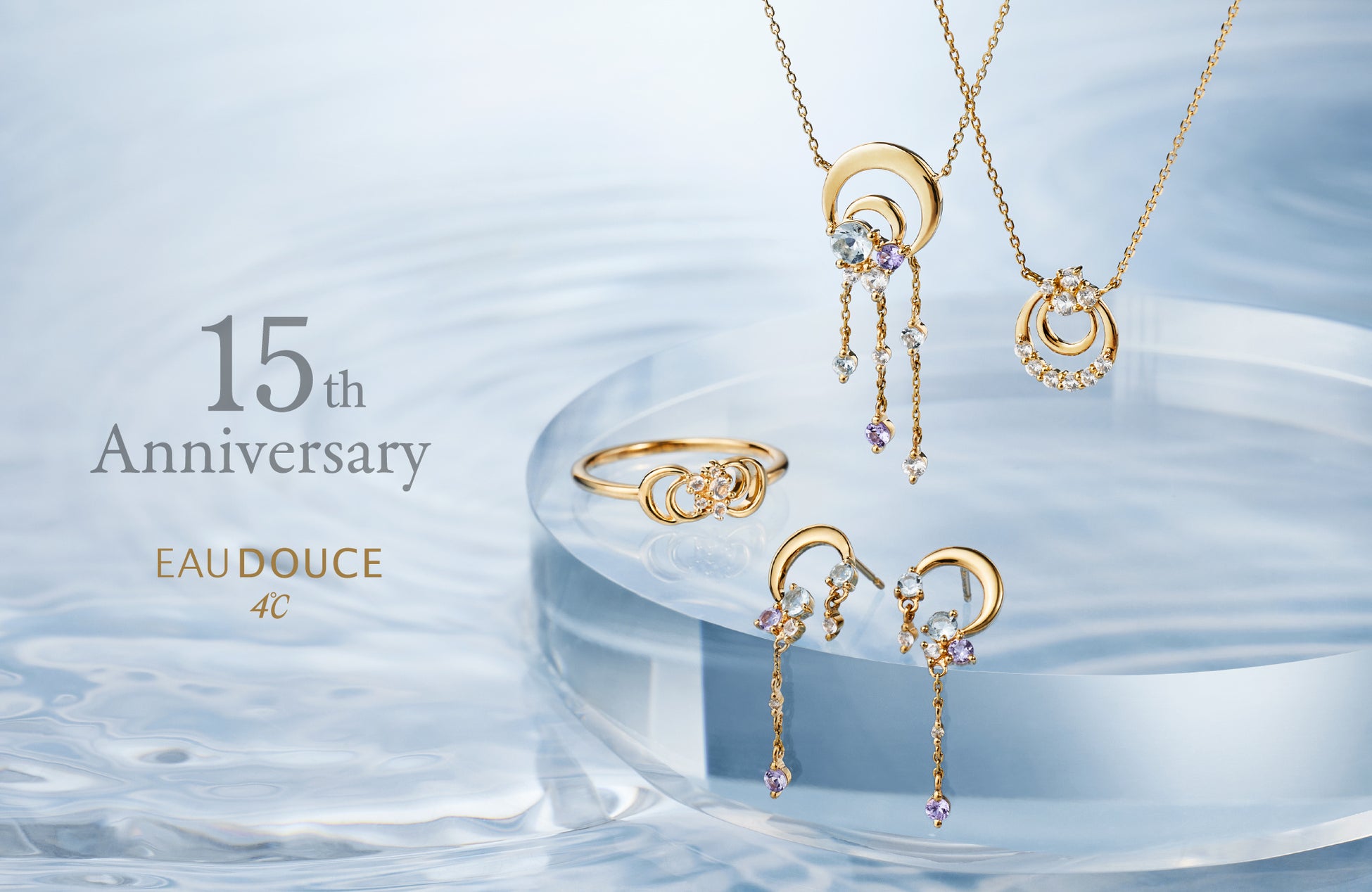 水の波紋が生み出す輝きをトパーズやダイヤモンドで繊細に表現した EAU DOUCE4℃の「15th Anniversary 3rd Collection」