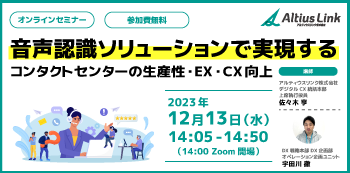 テーマ | 音声認識ソリューションで実現するコンタクトセンターの生産性・EX・CX向上 |