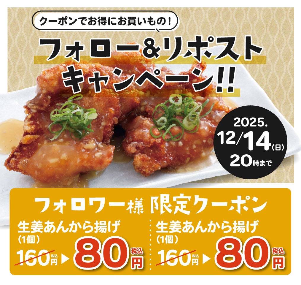 【寒い時期にぴったり】「生姜あんから揚げ」が期間限定で新登場!