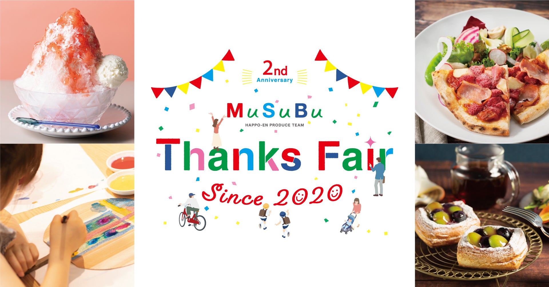 総合プロデュース企業 株式会社八芳園(取締役社長:井上義則、東京都港区白金台1‐1‐1、以下「八芳園」)は、2022年7月27日(水)~31日(日)の5日間、八芳園が運営する「MuSuBu」開業2周年を記念した『Thanks Fair since 2020』を、白金台「MuSuBu」にて開催いたします。2年間の感謝を込めて、これまで「MuSuBu」にて開催してきたポップアップショールームの集大成を発表!2年間を振り返る展示や、歴代人気コンテンツやメニューの復活など、これまでの実績を"体験"いただきながら、新たな"気づき"に出逢える5日間をお届けいたします。