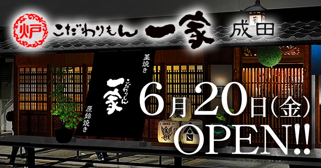 株式会社一家ホールディングスの連結子会社である株式会社一家ダイニングプロジェクト(本社:千葉県市川市、代表取締役社長:武長 太郎 以下当社)が運営する、“第二の我が家”をコンセプトに、ほっとくつろげるおもてなしと空間で、日本全国の旬の食材を活かした料理や地酒を提供する本格和食居酒屋『こだわりもん一家 成田店』を、2025年6月20日(金)17時にオープンしますのでお知らせいたします。オープンを記念し、当店のOPENチラシをお持ちのお客様は、お会計から20%OFFさせていただきます。(他の割り引きとの併用不可/1会計につき1枚ご利用可能/割引額上限1万円まで/有効期限2025年9月末まで/成田店のみ利用可能)