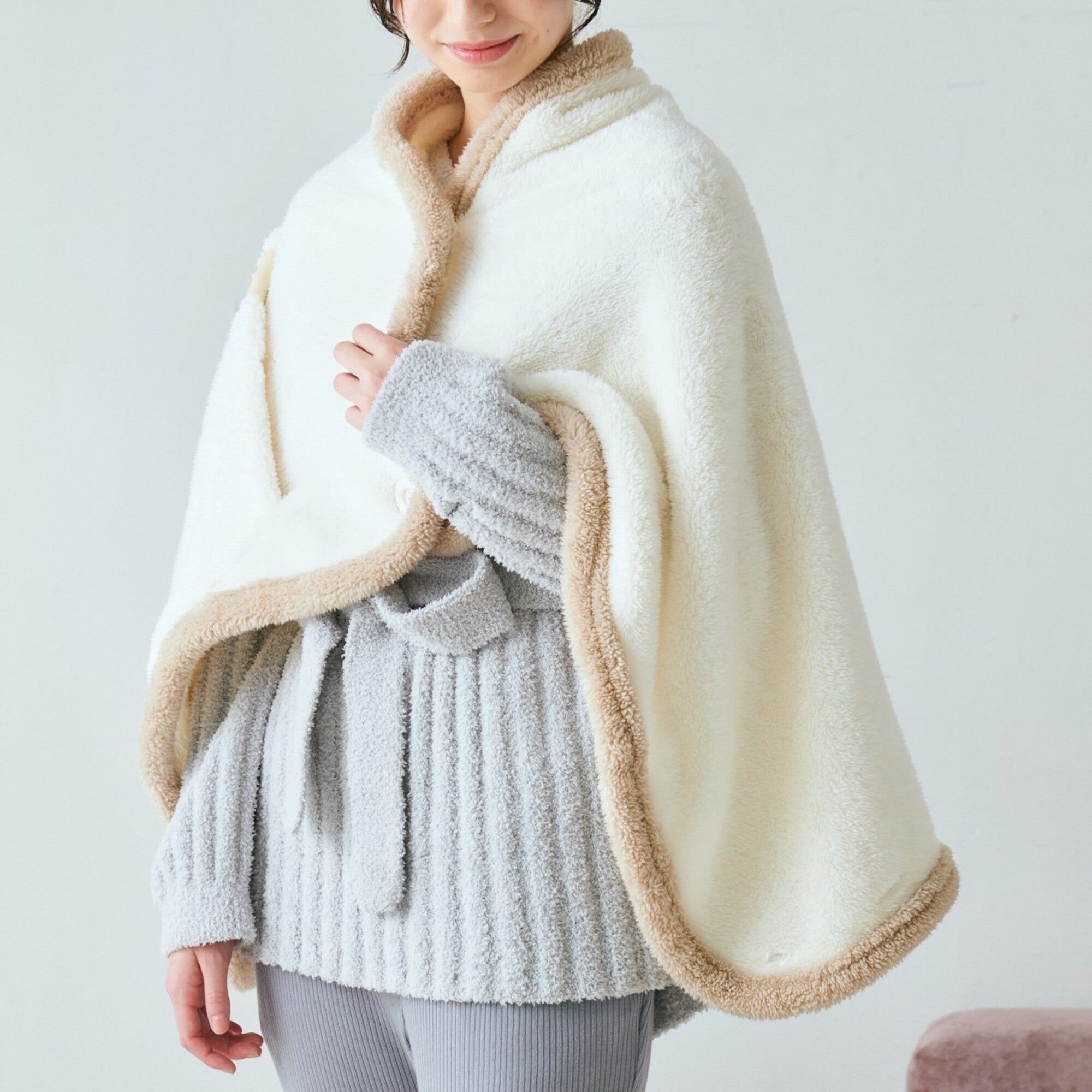 ポンチョ、ボレロ、ブランケット、巻きスカートの4WAY、使わない時はポケットに収納するとクッションになる優れものアイテムです。ふわふわの肌触りが気持ちよく、軽い着心地なので長時間着ていても疲れにくいのが嬉しいポイント。プレゼントにもらって嬉しいアイテムです。