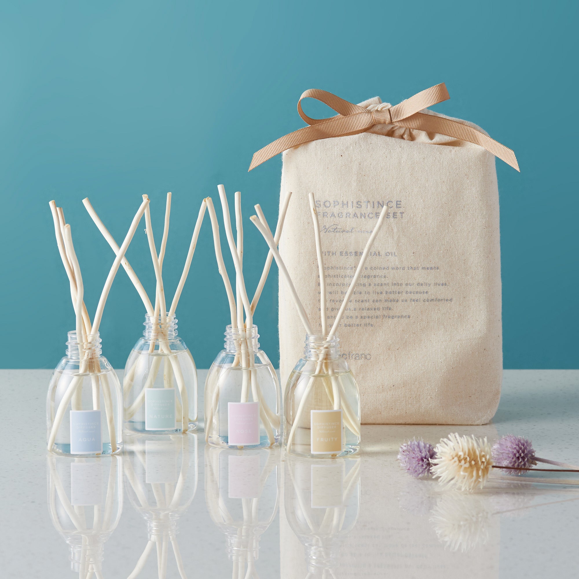 洗練された香りが人気のソフィスティンスルームフレグランスをプチサイズで4個セットにしました。お部屋によって香りを使い分けたり、色々な香り試すことができます。ゆったりと落ち着いた魅力的なフレグランスは大人ギフトにおすすめです。