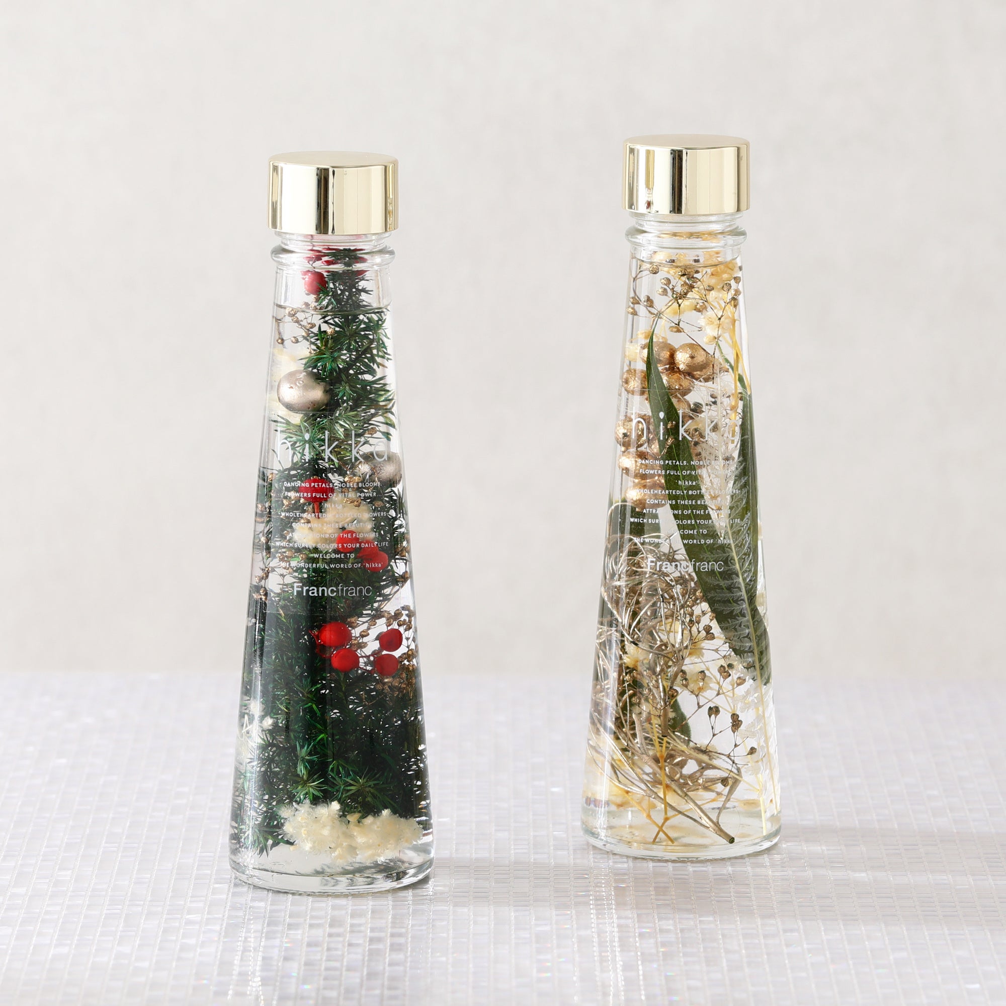 クリスマス限定デザインのツリーをイメージしたハーバリウムです。置く場所を選ばず、気軽に美しい植物をお楽しみいただけます。大人っぽくお洒落なクリスマスギフトにぴったりです。