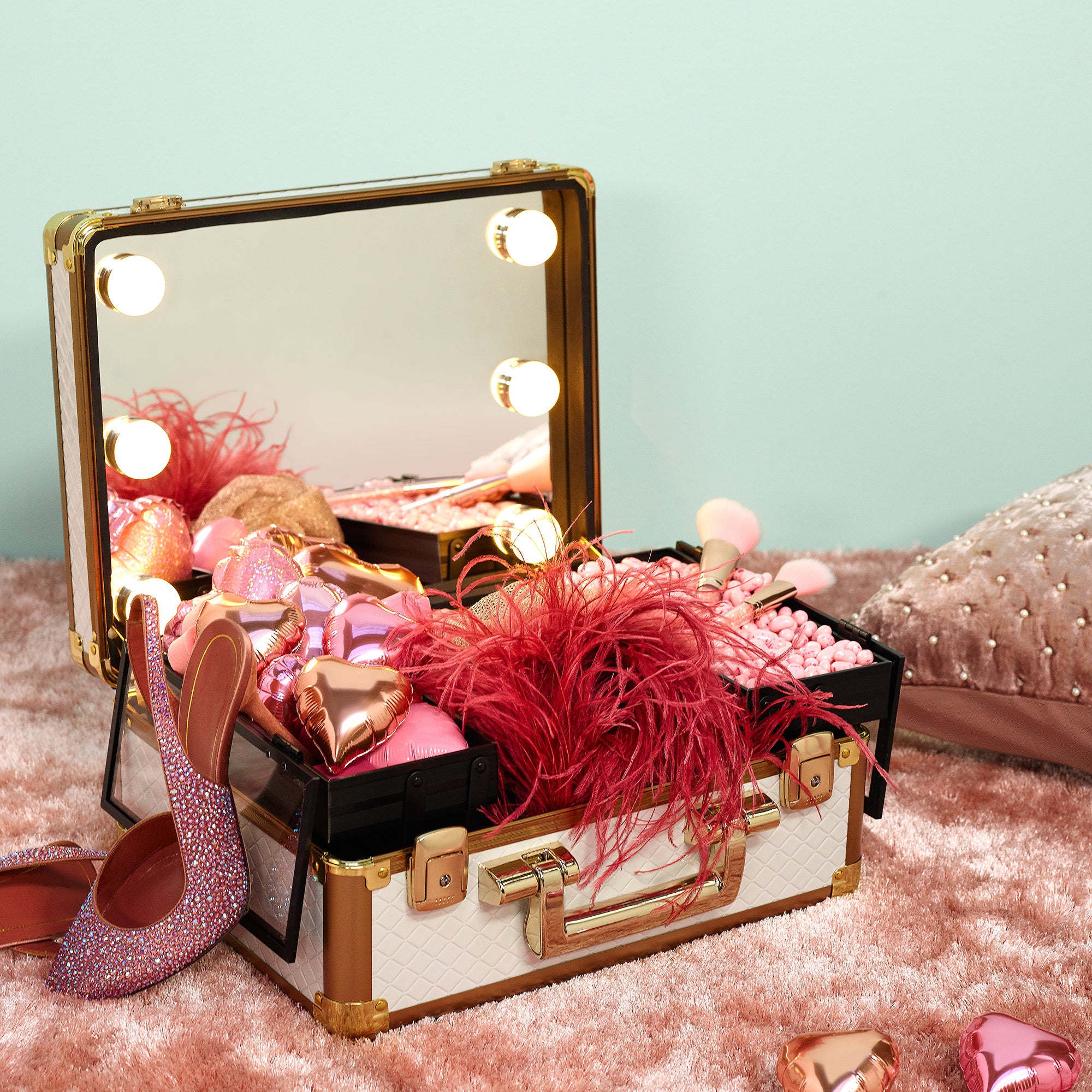 ハリウッドミラーが一体型になったゴージャスなトランクケース型のメイクボックスです。ライト切り替え・調光機能もついた収納力もたっぷりなとっておきのアイテムは自分へのご褒美や、大切な方への特別感あるクリスマスギフトにぴったりのアイテムです。