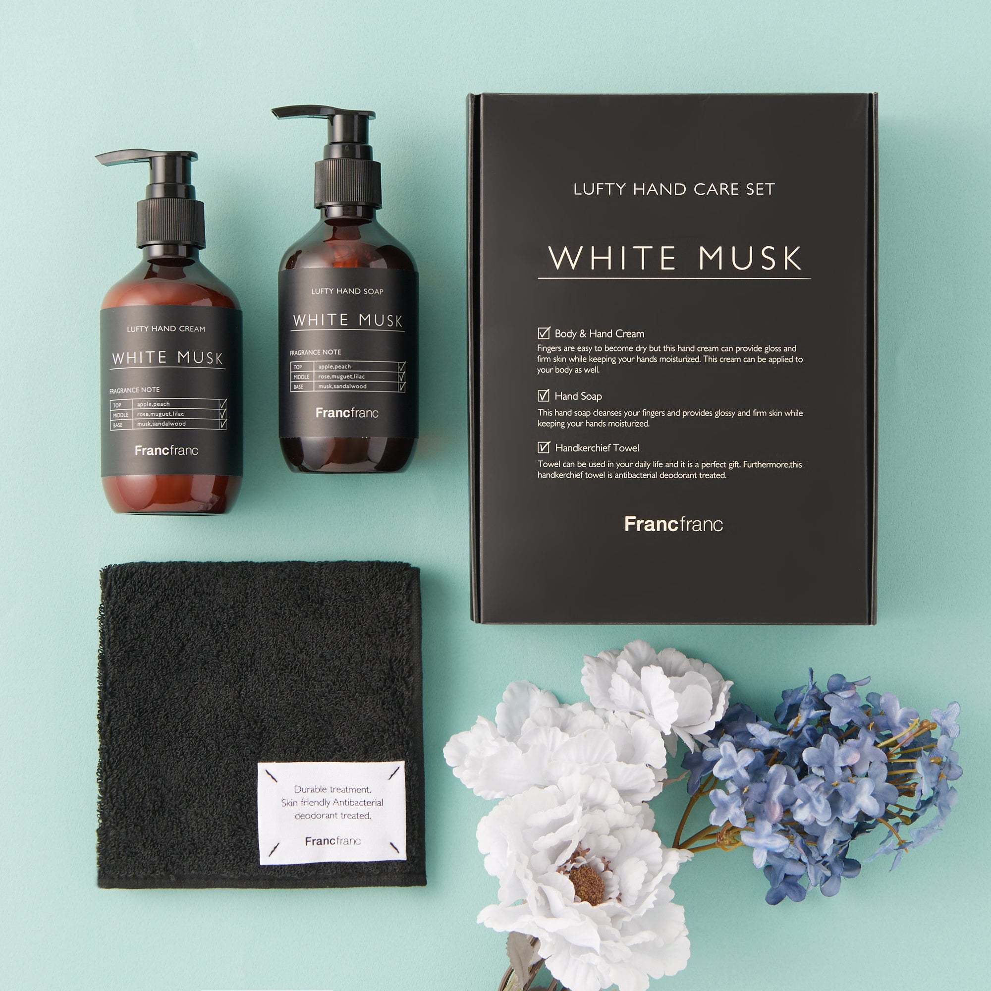 ホワイトムスクの香りが、どの世代の方にも根強い人気のルフティーシリーズはユニセックスでスマートなデザインが年末年始のご挨拶ギフトなどキッチリギフトにもおすすめです。ハンカチはどのシリーズも抗菌防臭仕様なので清潔にお使いいただけます。