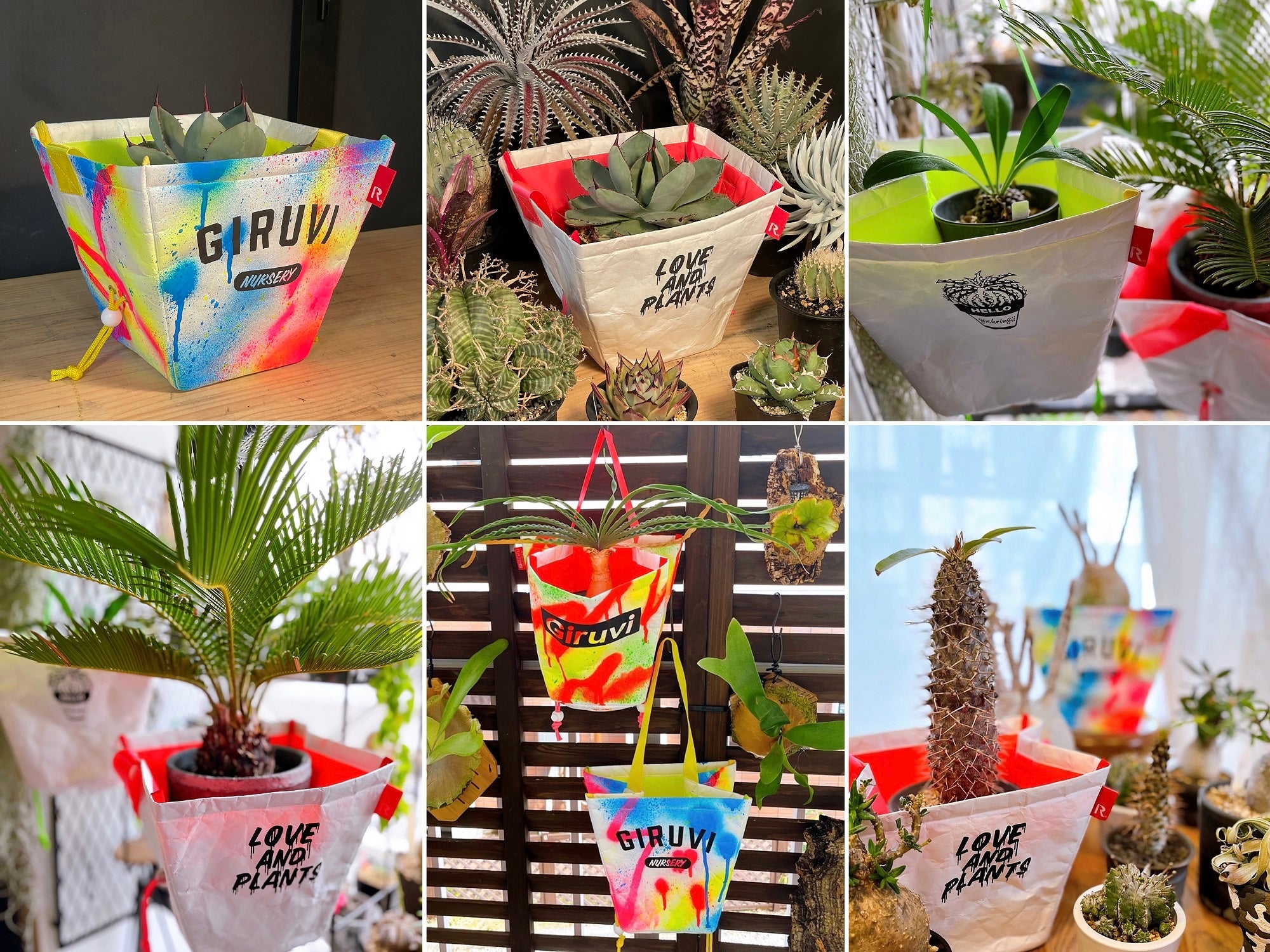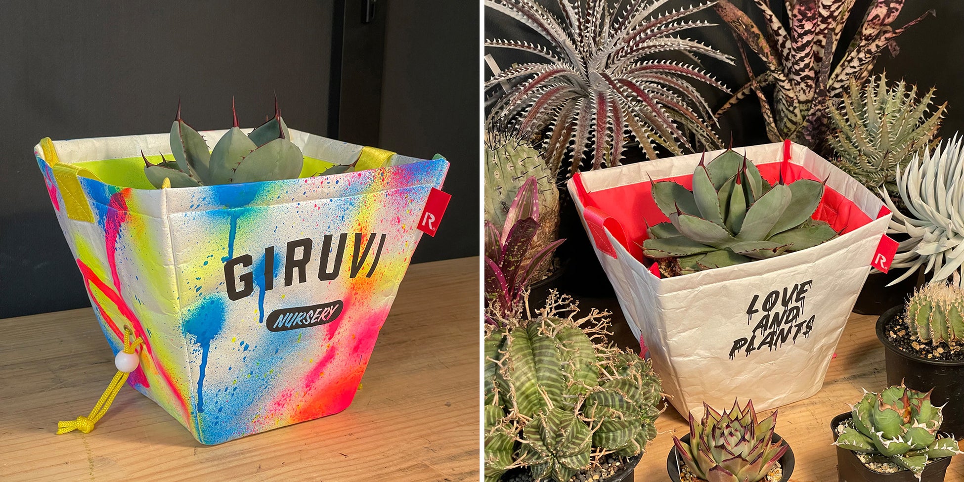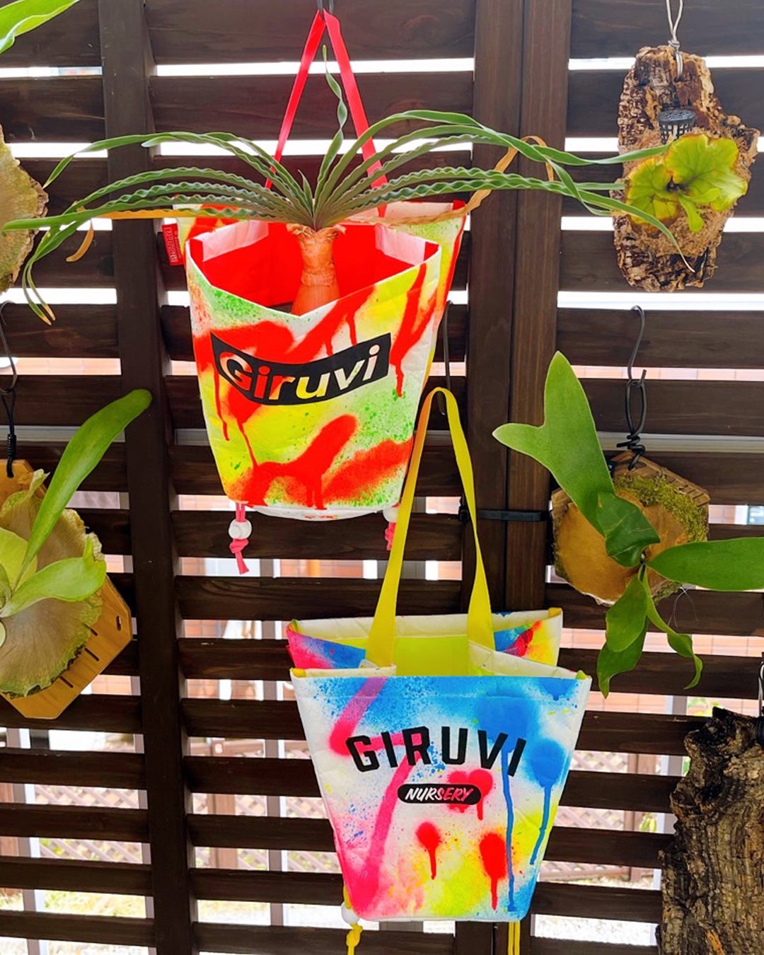多肉植物の愛好家であるGIRUVI。自身で育てている植物と、その植物をモチーフにしたアート作品を制作。その植物を持ち運ぶためのトートバッグPOT CARRY TOTE「PLANTA」をリリース。植物を育てるように、GIRUVI自身が丁寧にシルクスクリーンで刷り上げた1点物の作品です。
