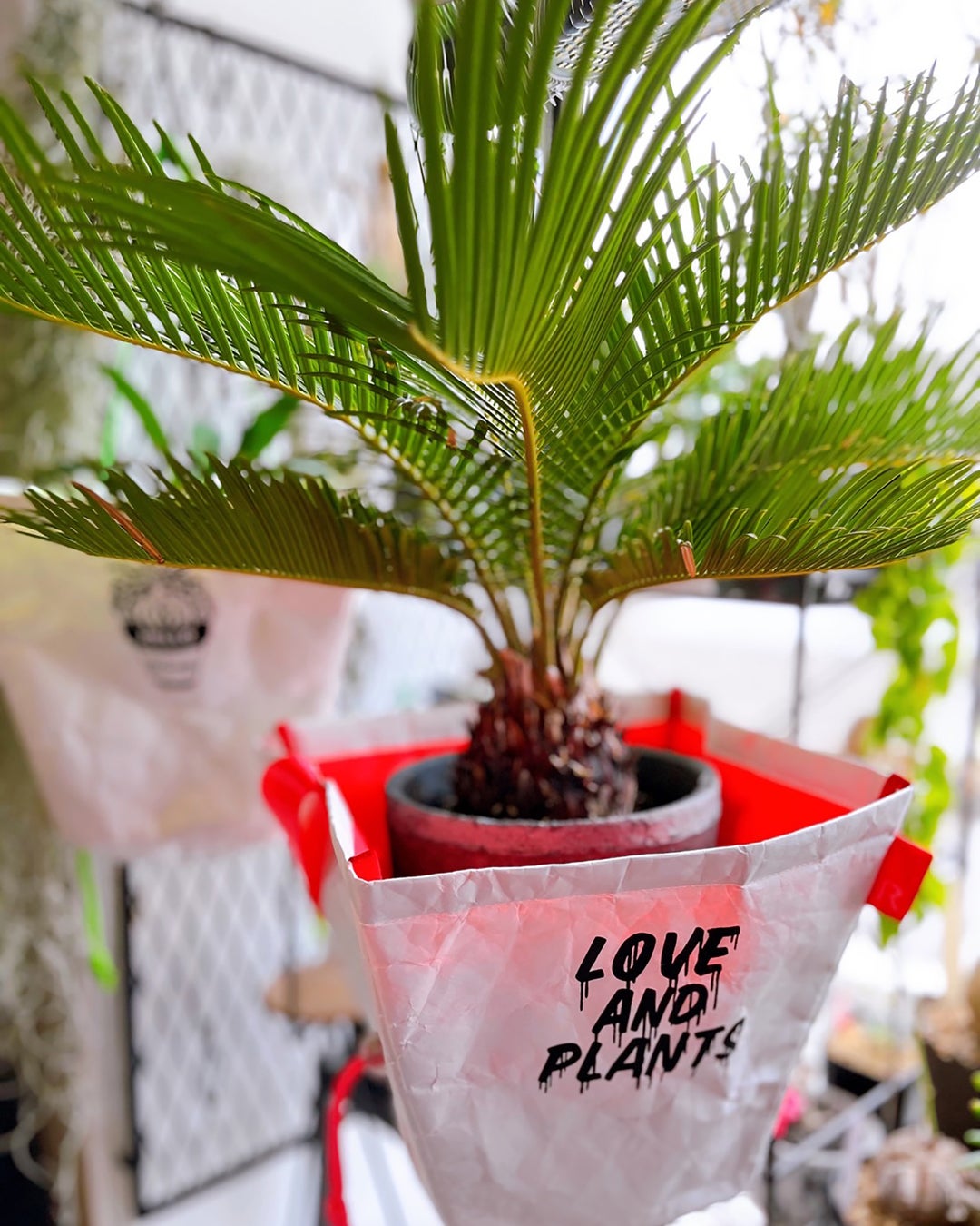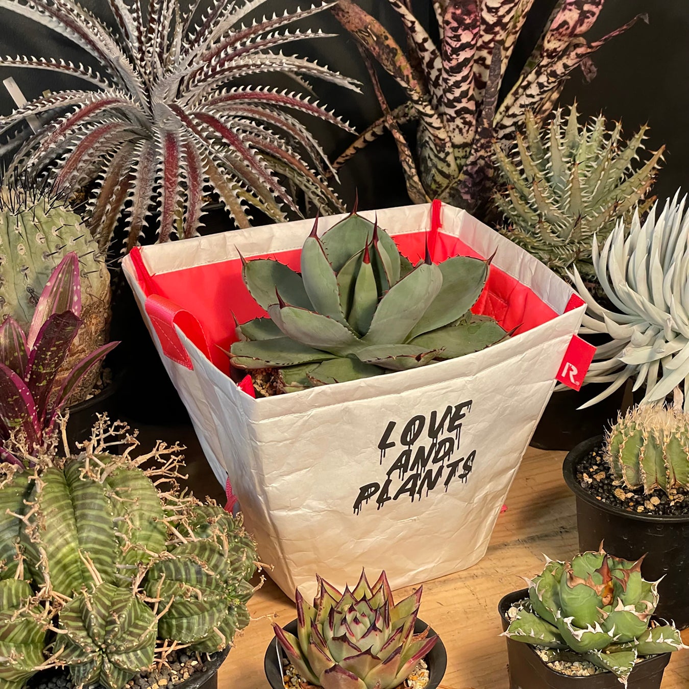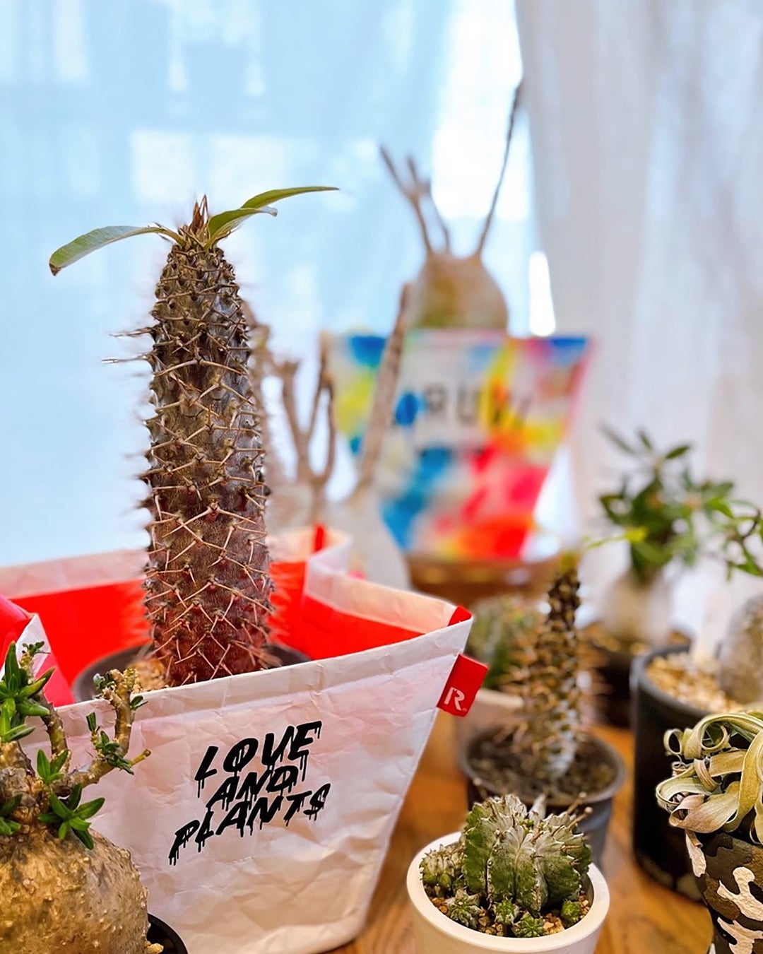多肉植物の愛好家であるGIRUVI。自身で育てている植物と、その植物をモチーフにしたアート作品を制作。その植物を持ち運ぶためのトートバッグPOT CARRY TOTE「PLANTA」をリリース。植物を育てるように、GIRUVI自身が丁寧にシルクスクリーンで刷り上げた1点物の作品です。