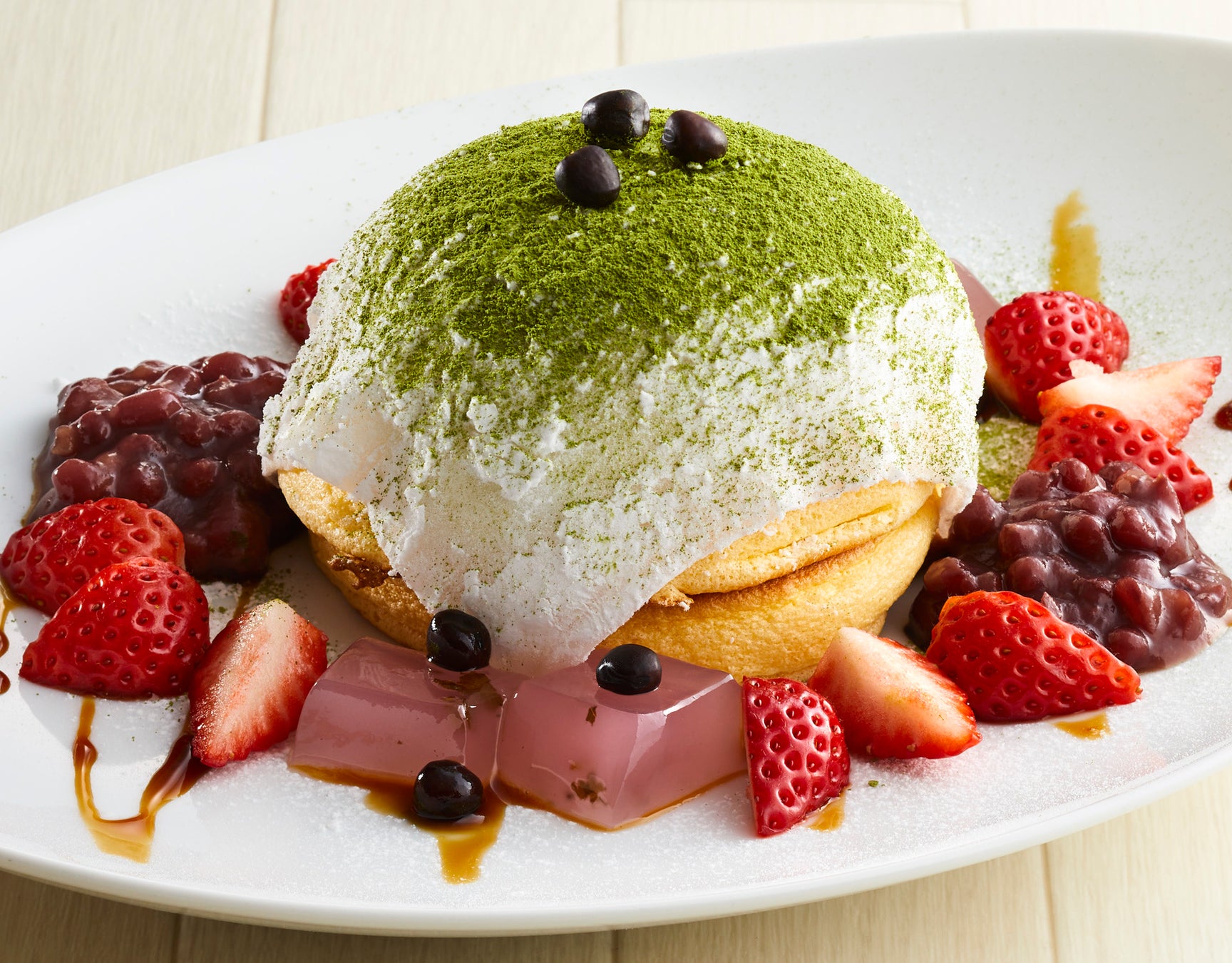 春の新作パンケーキは「和」がテーマの新感覚スイーツ。ふわもち食感、宇治抹茶の豊潤な香りとコク、トッピングのわらび餅や小豆など、並木街珈琲では初となる和風仕立てのパンケーキをお楽しみいただけます。