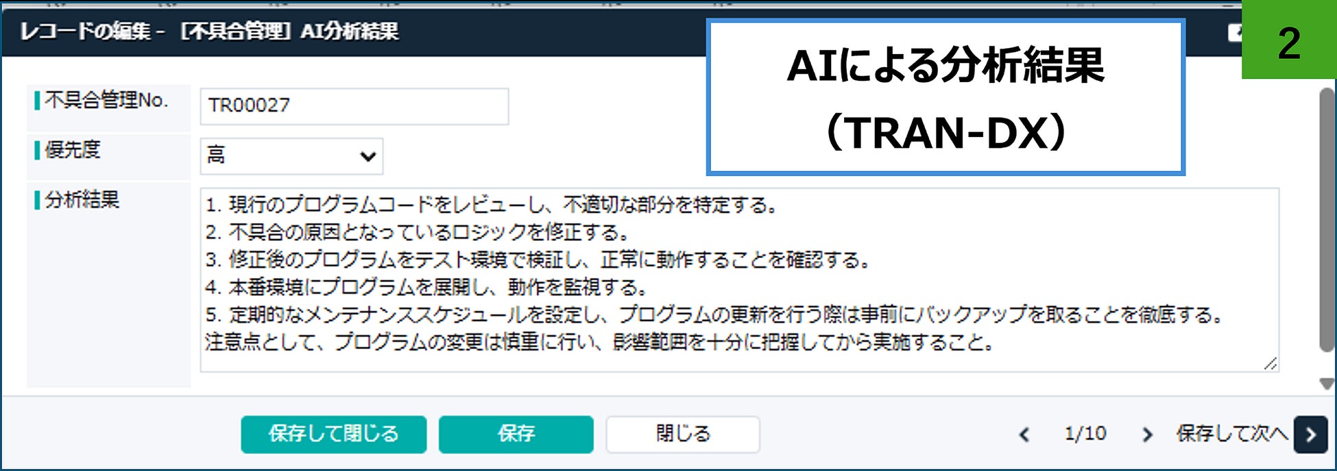 AIが出した分析結果や改善案はシステム内に蓄積・共有されます。これにより、単なる情報提供にとどまらず、次の改善策や品質向上施策につなげることができ、現場での改善活動を加速させます。