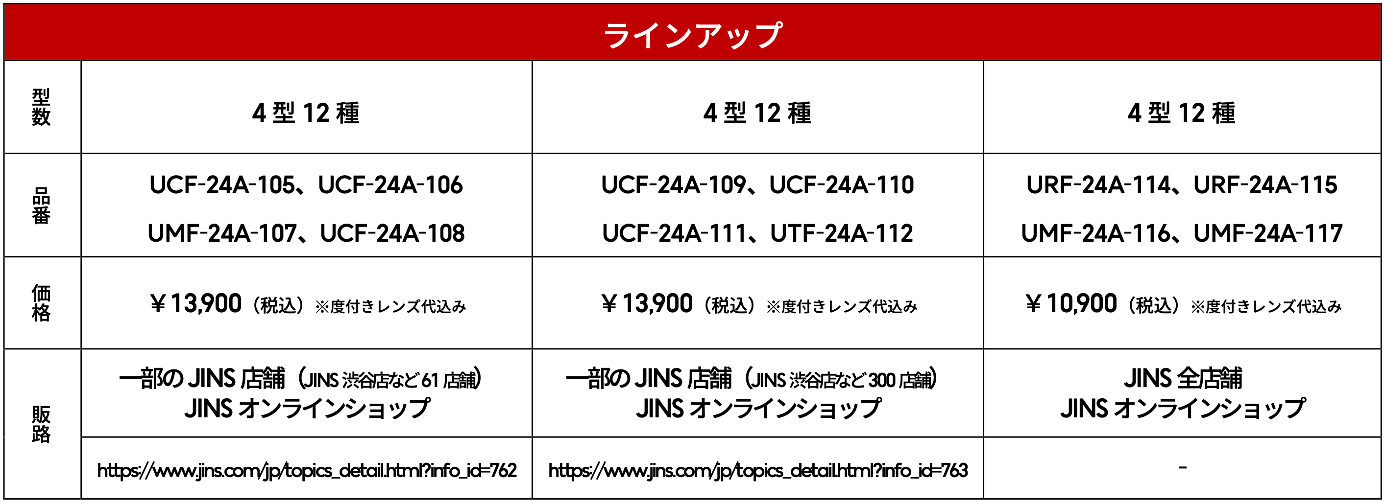 【商品名】JINS TODAY 2024-25FW