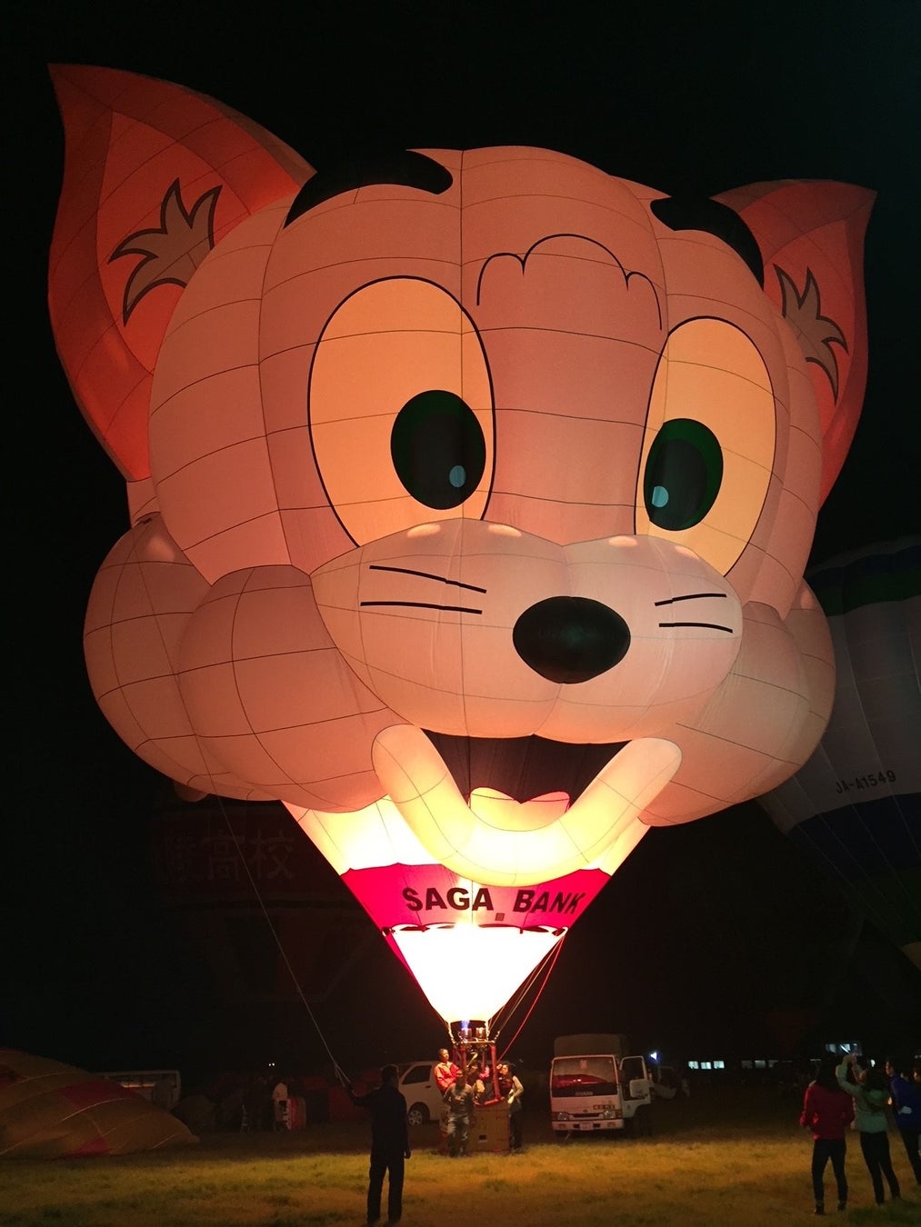 【イベント内容】 「トムとジェリー」のトムをモチーフとした日本唯一のバルーン「トムⅡ号」がバーナーの赤い炎に照らされ ライトアップ。幻想的な空間を演出します。(飛行無し)