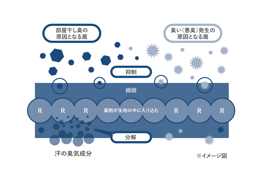 〈Repur®加工で高い抗菌防臭・消臭(汗臭)機能を付与。吸水面もあえてグレーに。〉