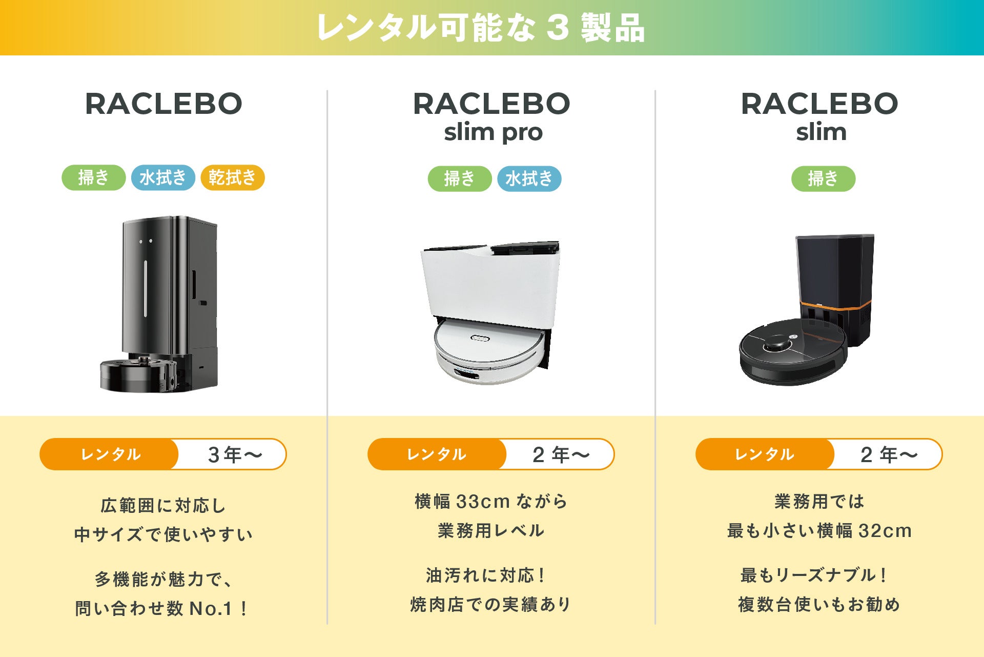 当サービスでは、ROBOTIオリジナル製品の「RACLEBOシリーズ」3製品のレンタル利用をご提供します。
