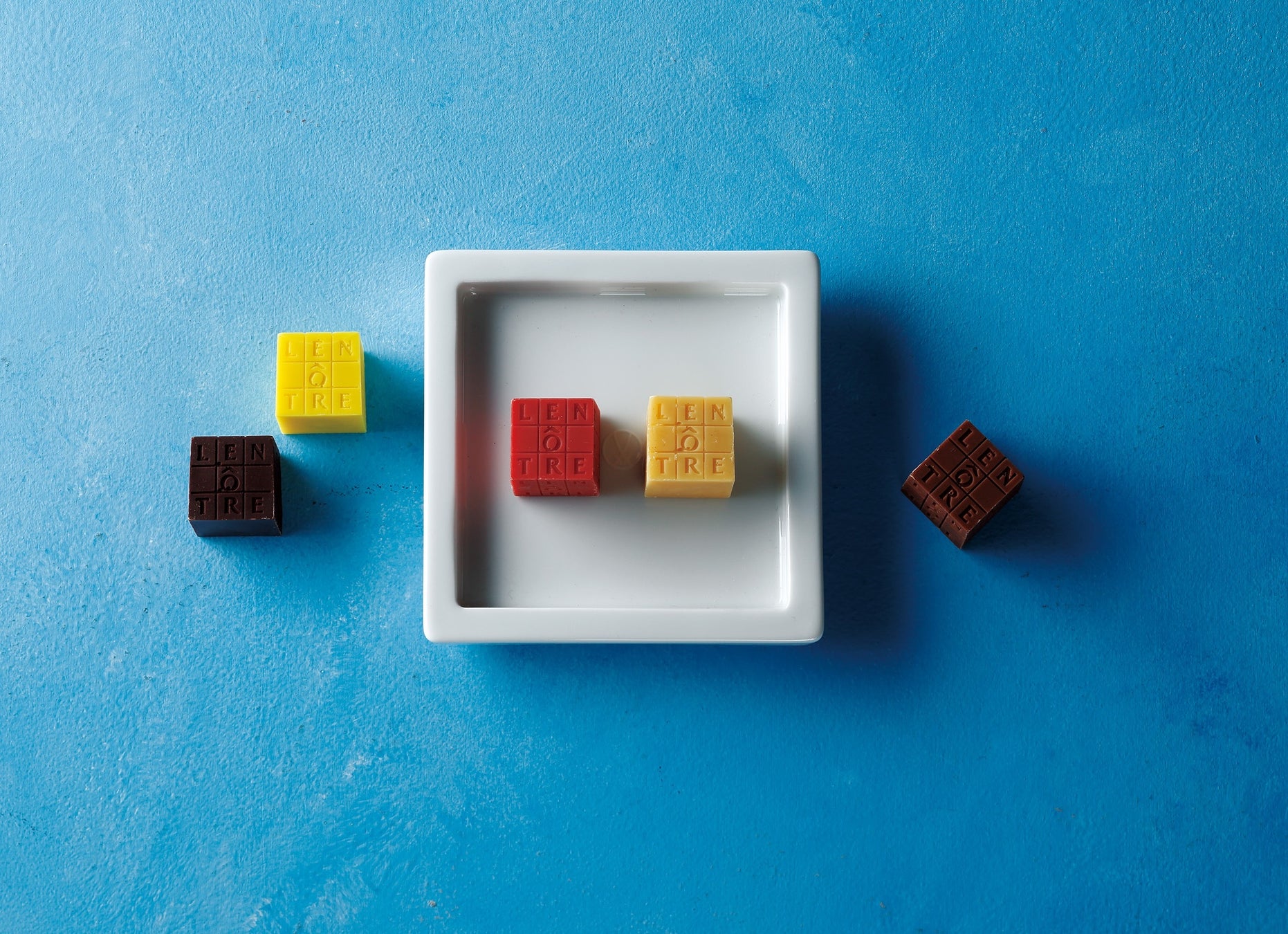 創業者ガストン・ルノートル氏の思想を受け継ぐパリ最高峰のメゾンのひとつ。濃厚なチョコレートと爽やかなフルーツピューレが織りなすカラフルな5種類のキューブ型ショコラを詰め合わせました。