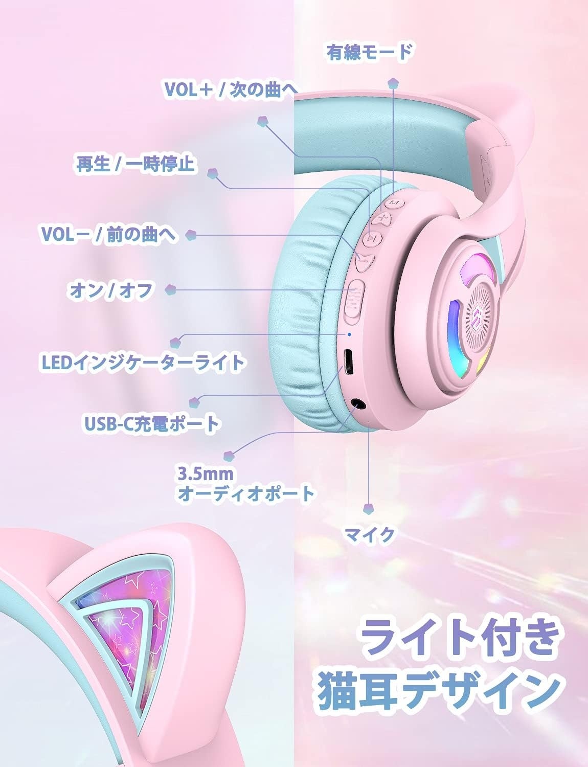 身に着けるだけで気分が上がる!ライト付きネコ耳デザインがポイントのヘッドホン!
