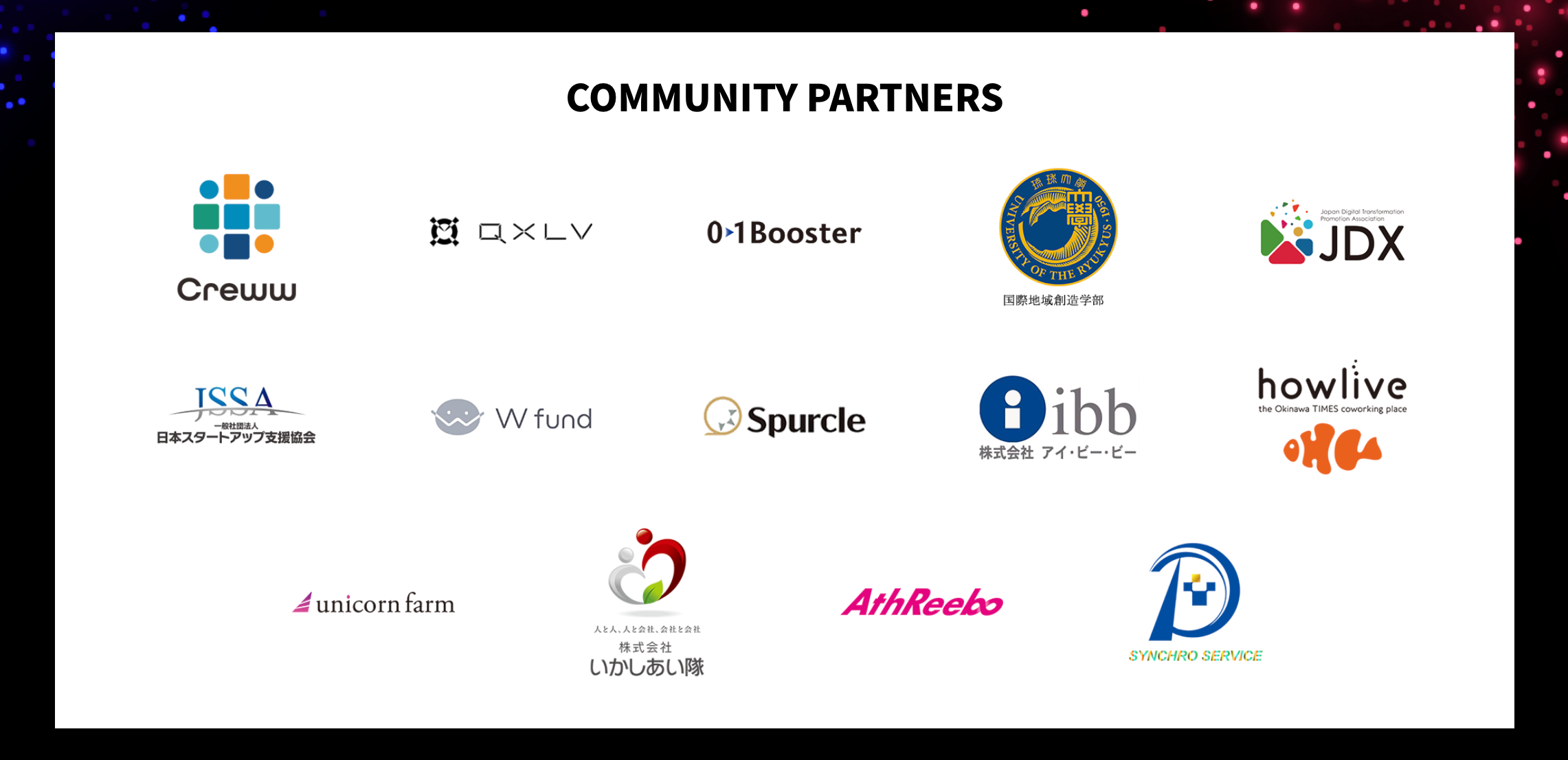 コミュニティパートナーは、「アスティーダフェス2023」に全国各地から世界に向けて取り組む志高いスタートアップを集結させるべく、『〜明日への希望であれ。〜』というコンセプトに共感頂いた各企業・団体・行政・教育機関等の皆様に参画頂いています。