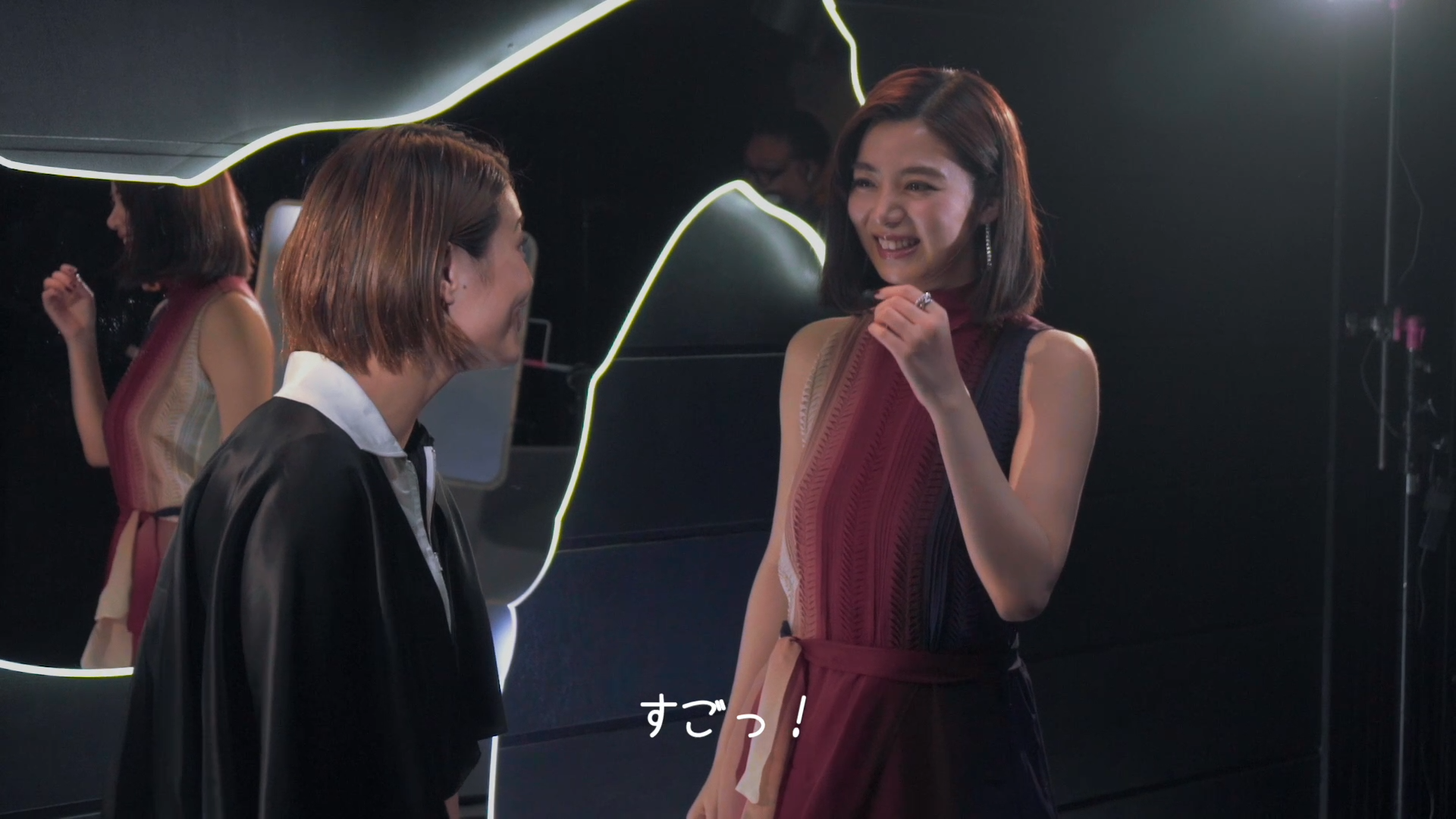 阿部さんとエライザさんの共演シーンも、撮影は順調に進行。「ぶつかった時のために静電気対策!」とお二人で仲良く手を触れあうなど、微笑ましいシーンもありました。