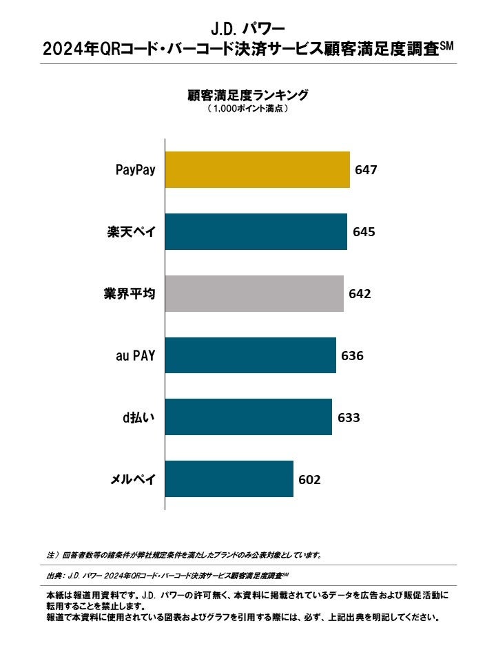 J.D. パワー 2024年QRコード・バーコード決済サービス顧客満足度No.1を発表
