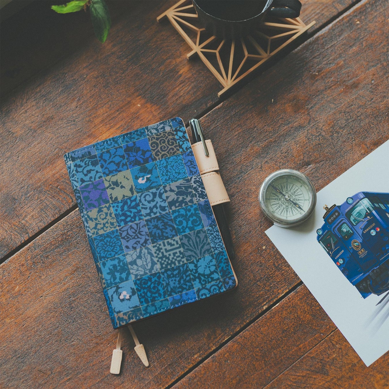 ●手帳カバー(オリジナルサイズ・A6)「水戸岡鋭治/草木組子(青)」:5,830円~6,930円