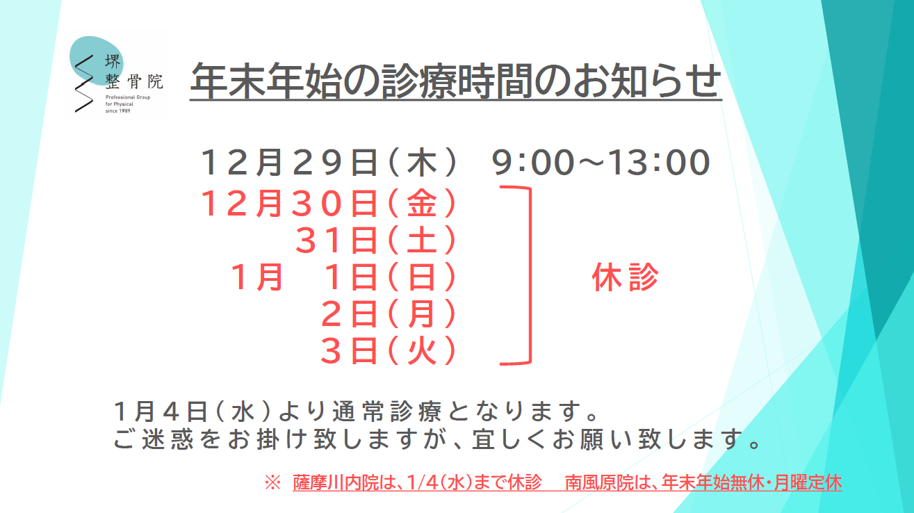 年末年始の疲れを癒しに、来院されてはいかがですか。