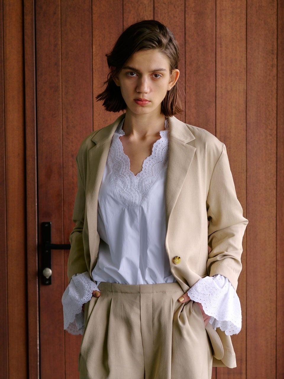 カットワーク刺繍ボリュームスリーブブラウス ¥16,500(税込)