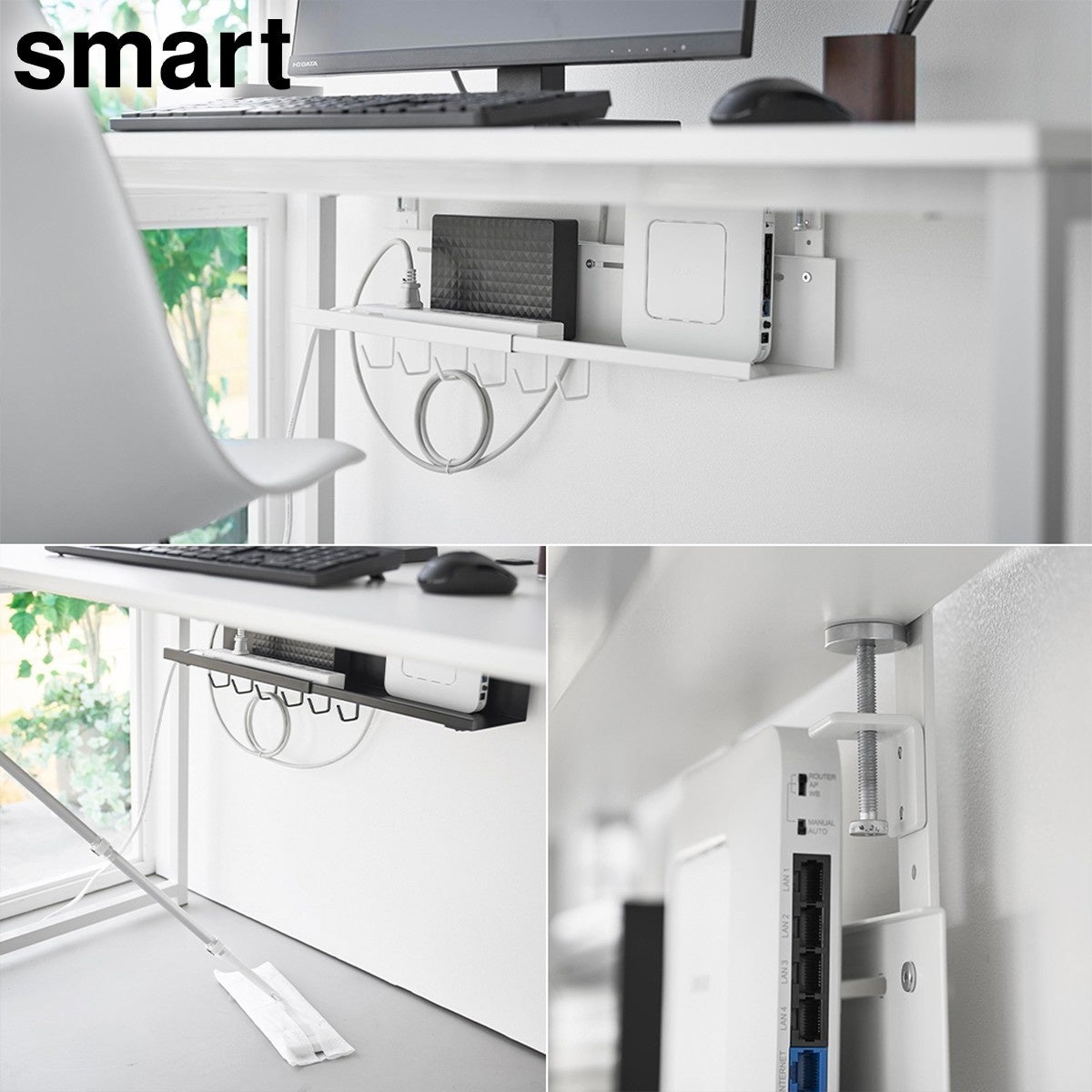 散らかりがちなケーブルやタップ類を浮かせて収納できるので、デスク下がスッキリ片付きます。
